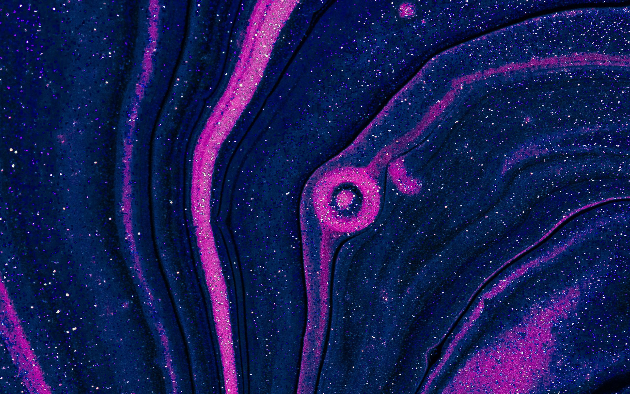 Description: A purple and black abstract background with stars and circles in the center of the image and a blue and purple swirl.