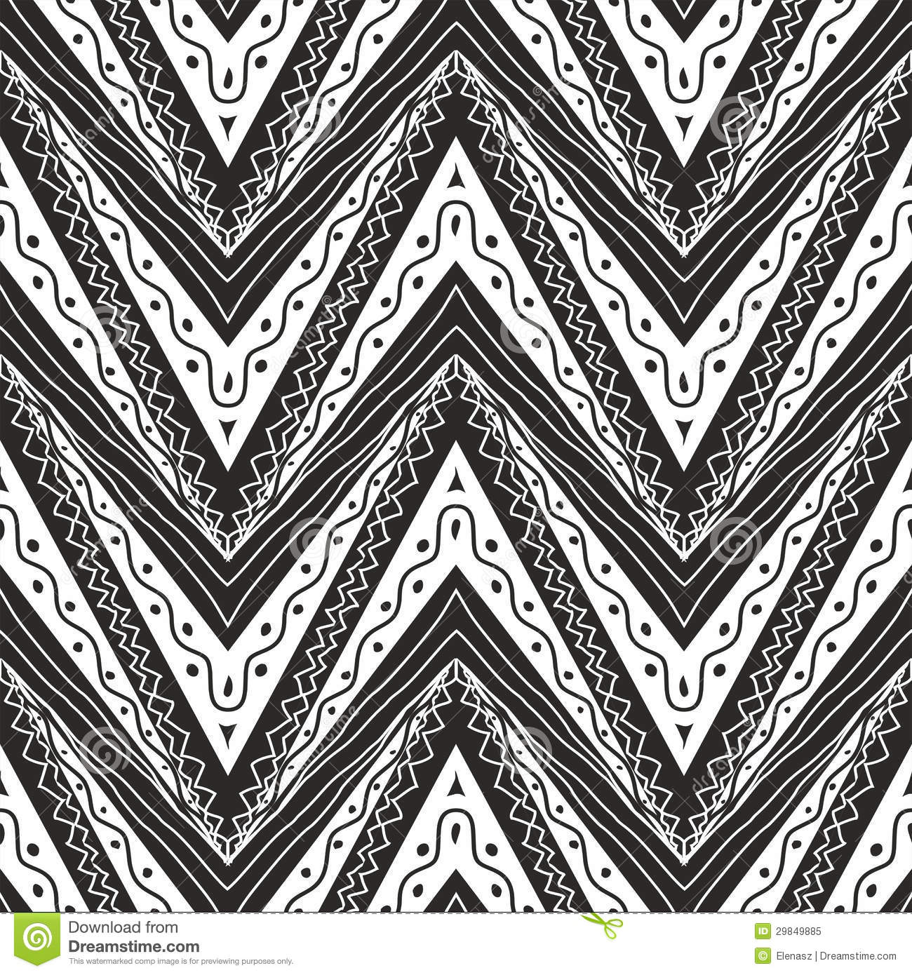 Description: A black and white abstract pattern with wavy lines and zigzag lines on a white background stock.