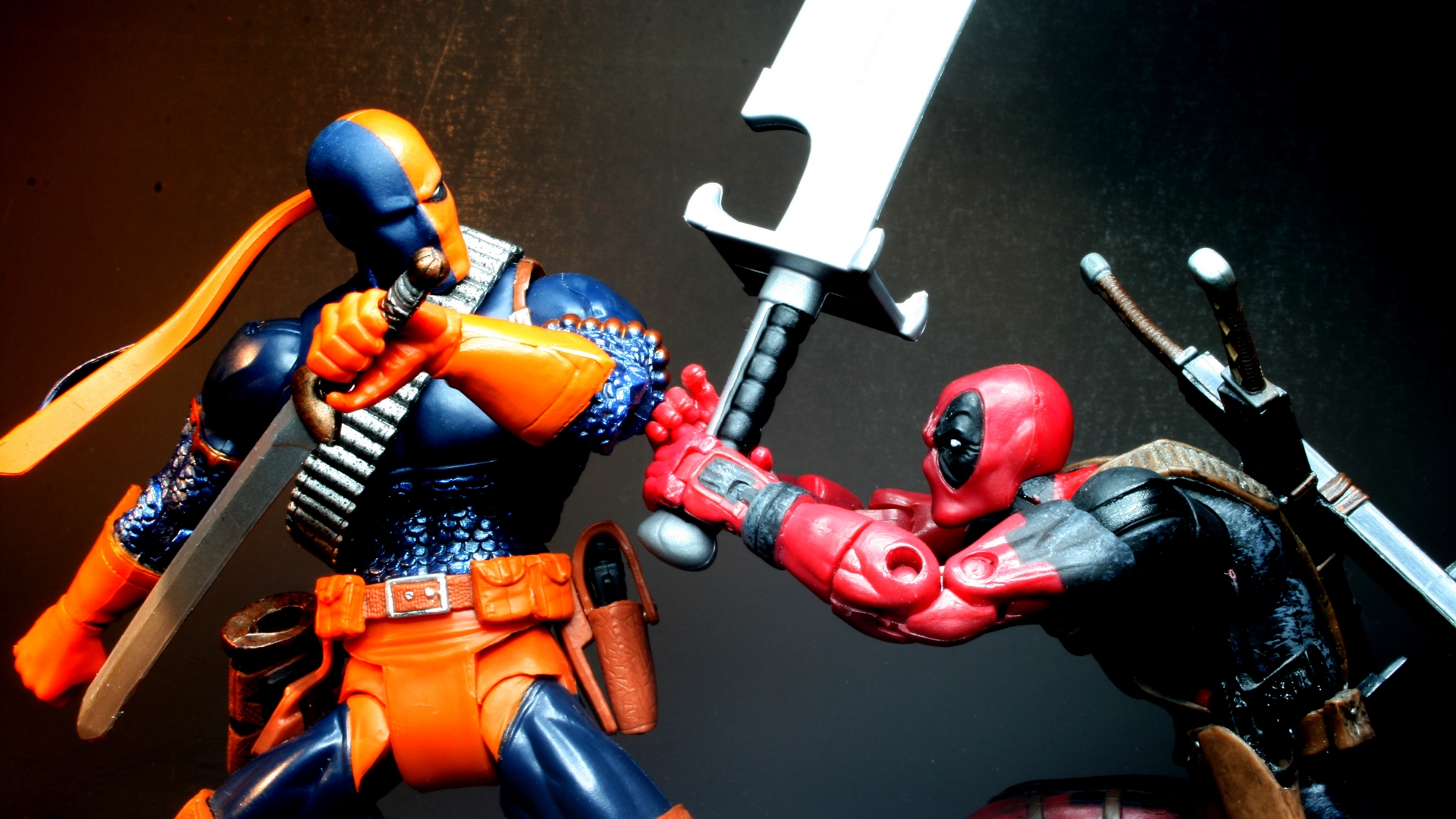 Description: Two action figures are posed next to each other with swords in their hands and a sword in their hand.