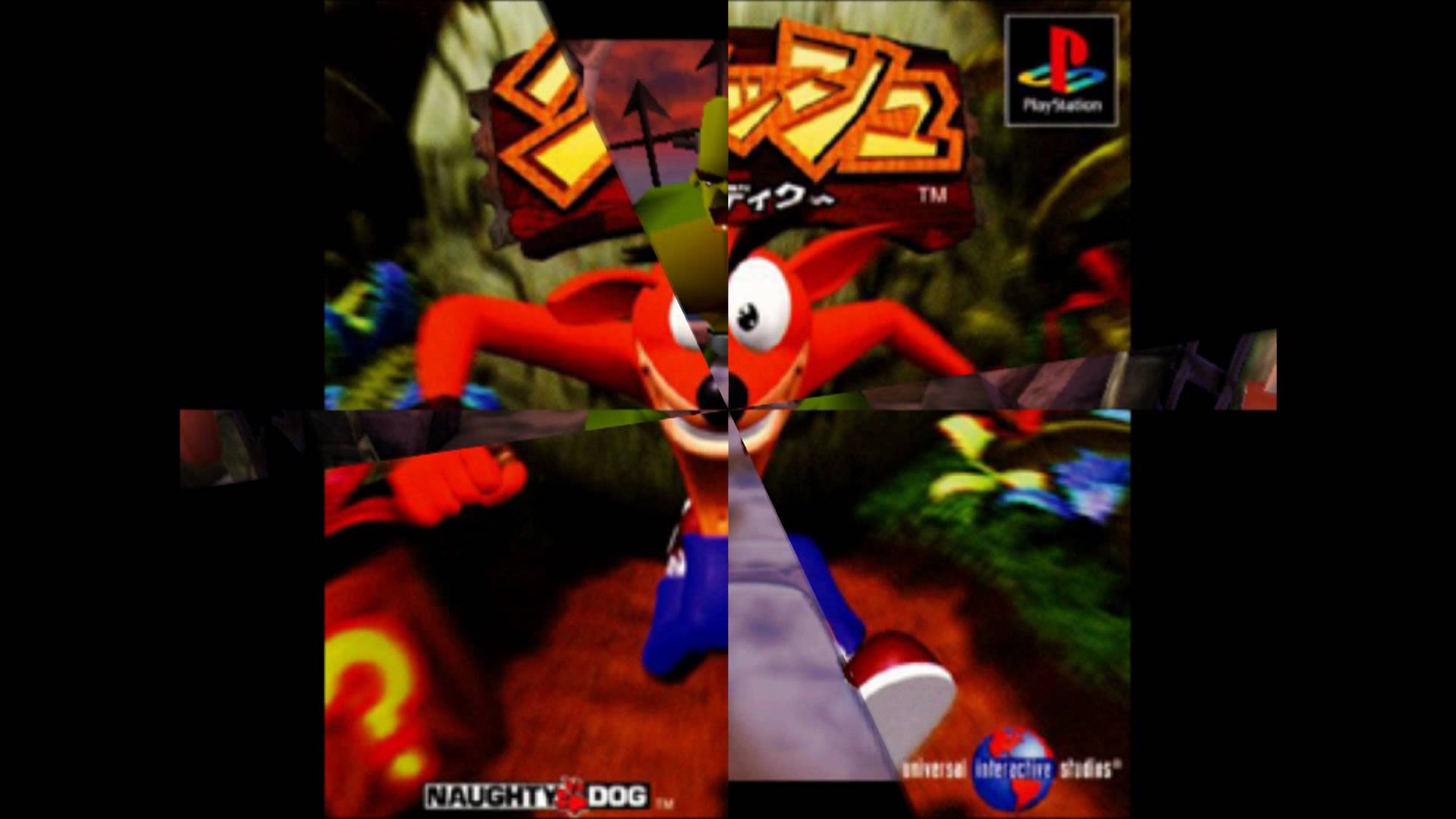 Description: A cartoon character in a video game with a red background and a black background with a red and white character.