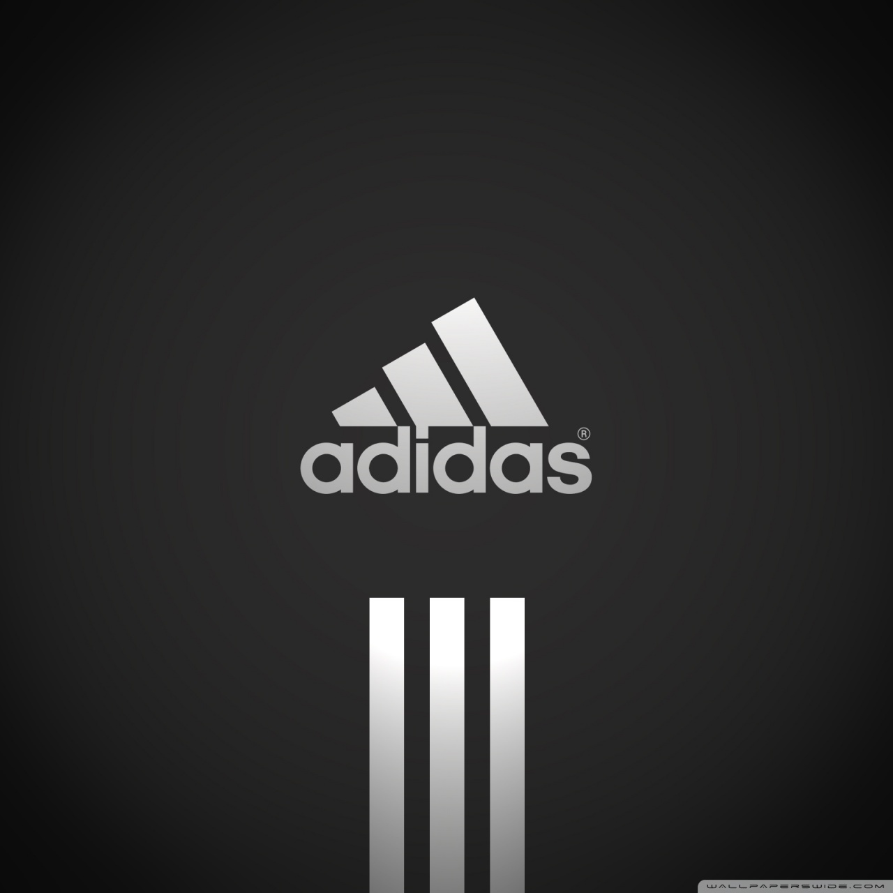 Description: A black and white adidas logo on a black background with a white stripe on the bottom of the logo.