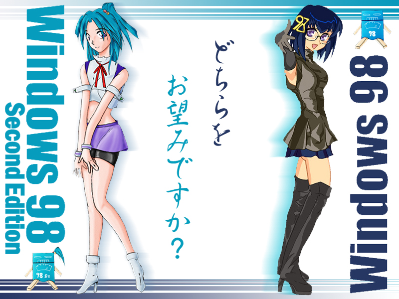 Description: A woman in a short skirt and boots standing next to another woman in a short skirt and boots.