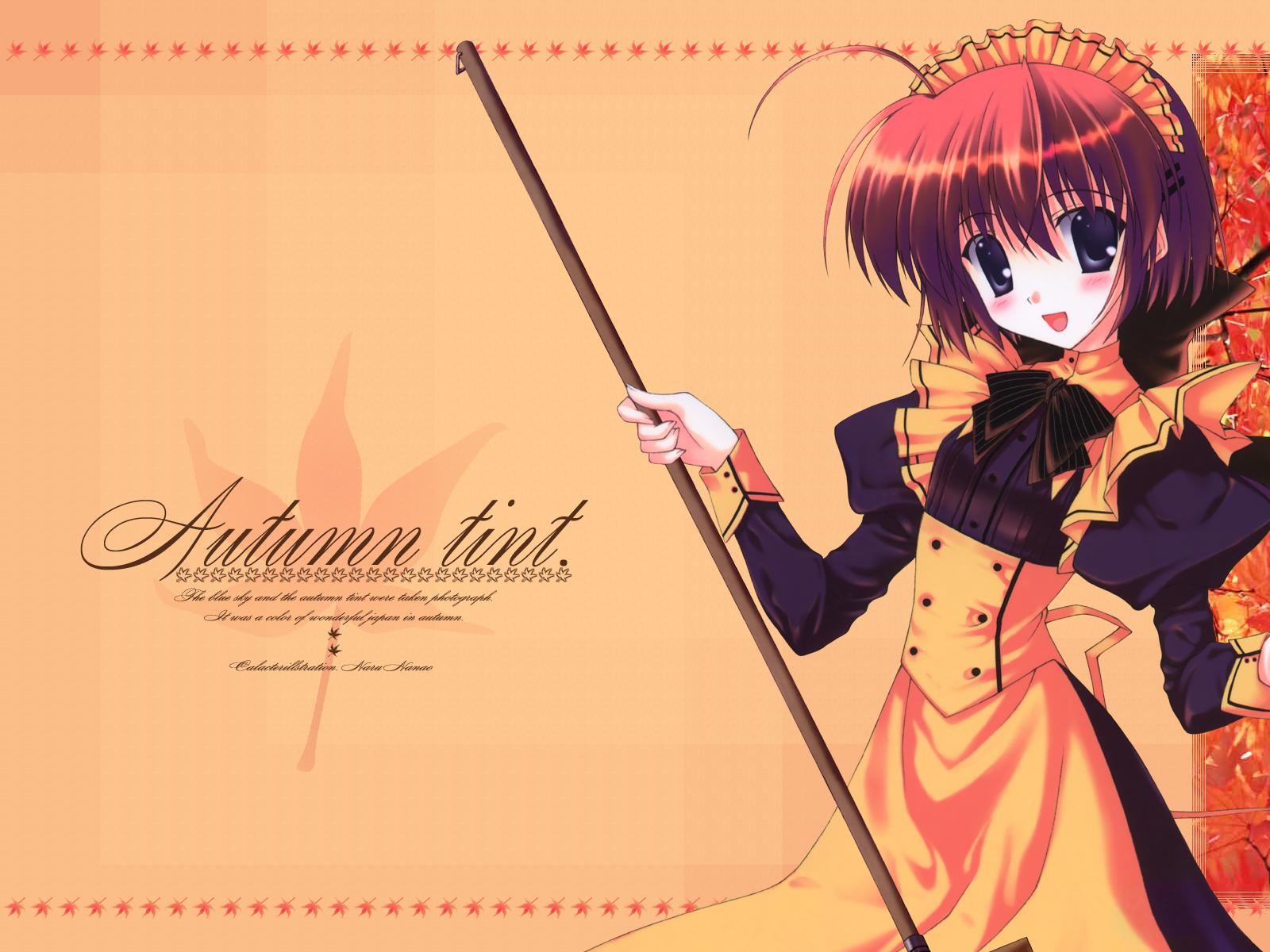 Description: A woman in a dress holding a broom and a flowered background with a textural message underneath it.