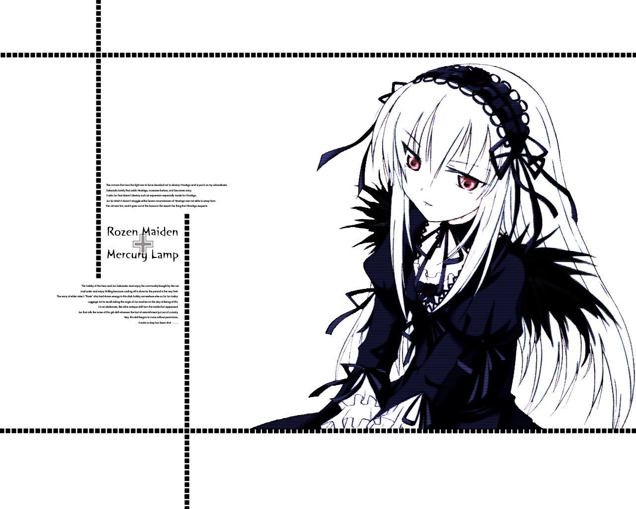 Description: A picture of a girl with long hair and a black dress with a black bow around her neck and a black ribbon around her neck.