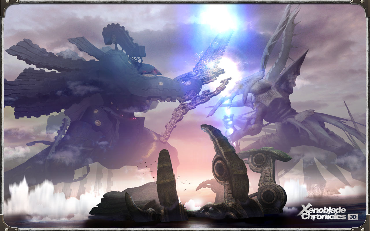 Description: A digital painting of a giant alien like creature with a massive body of water in the background and a sky with clouds.