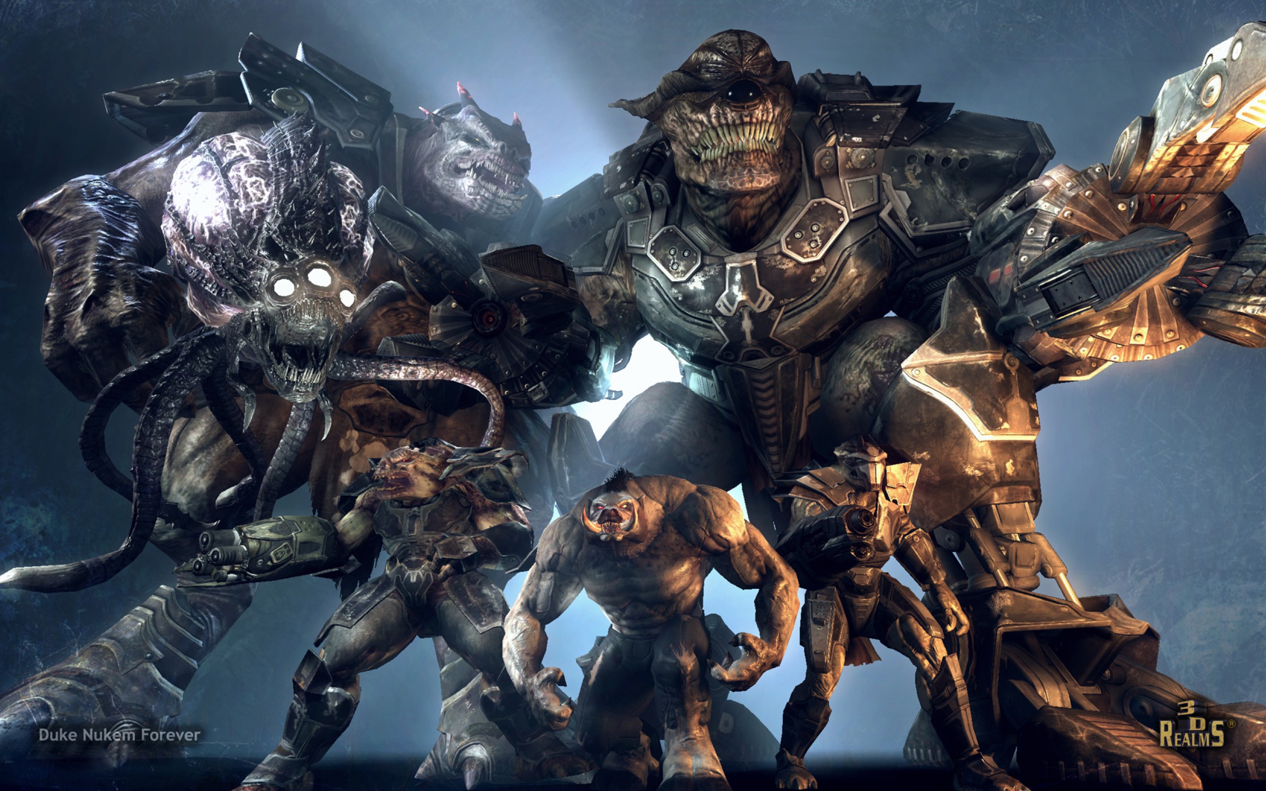 Description: A group of alien creatures in a dark environment with a light shining on them and a demon in the middle.