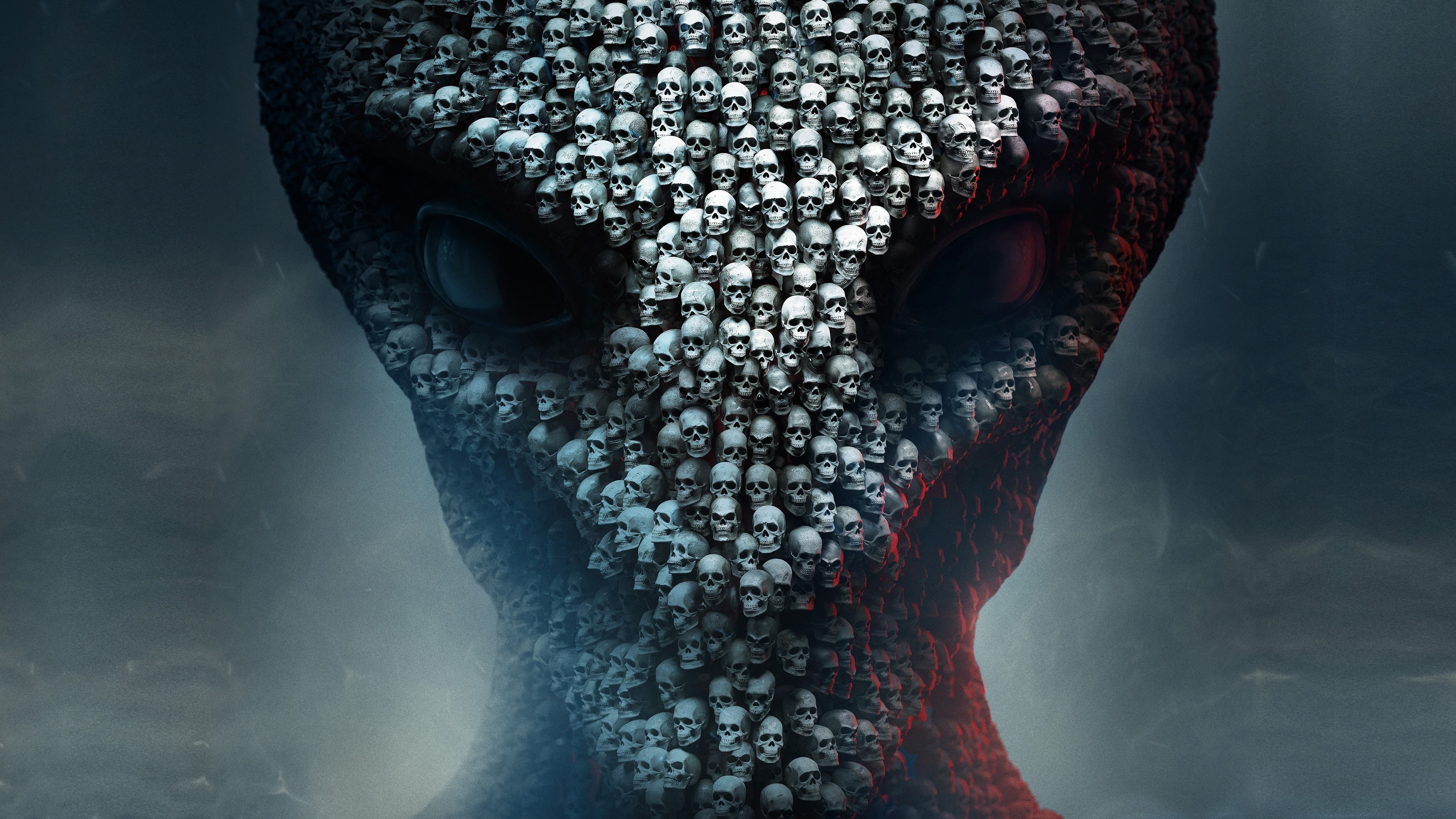Description: A strange looking alien with skulls on its face and eyes.