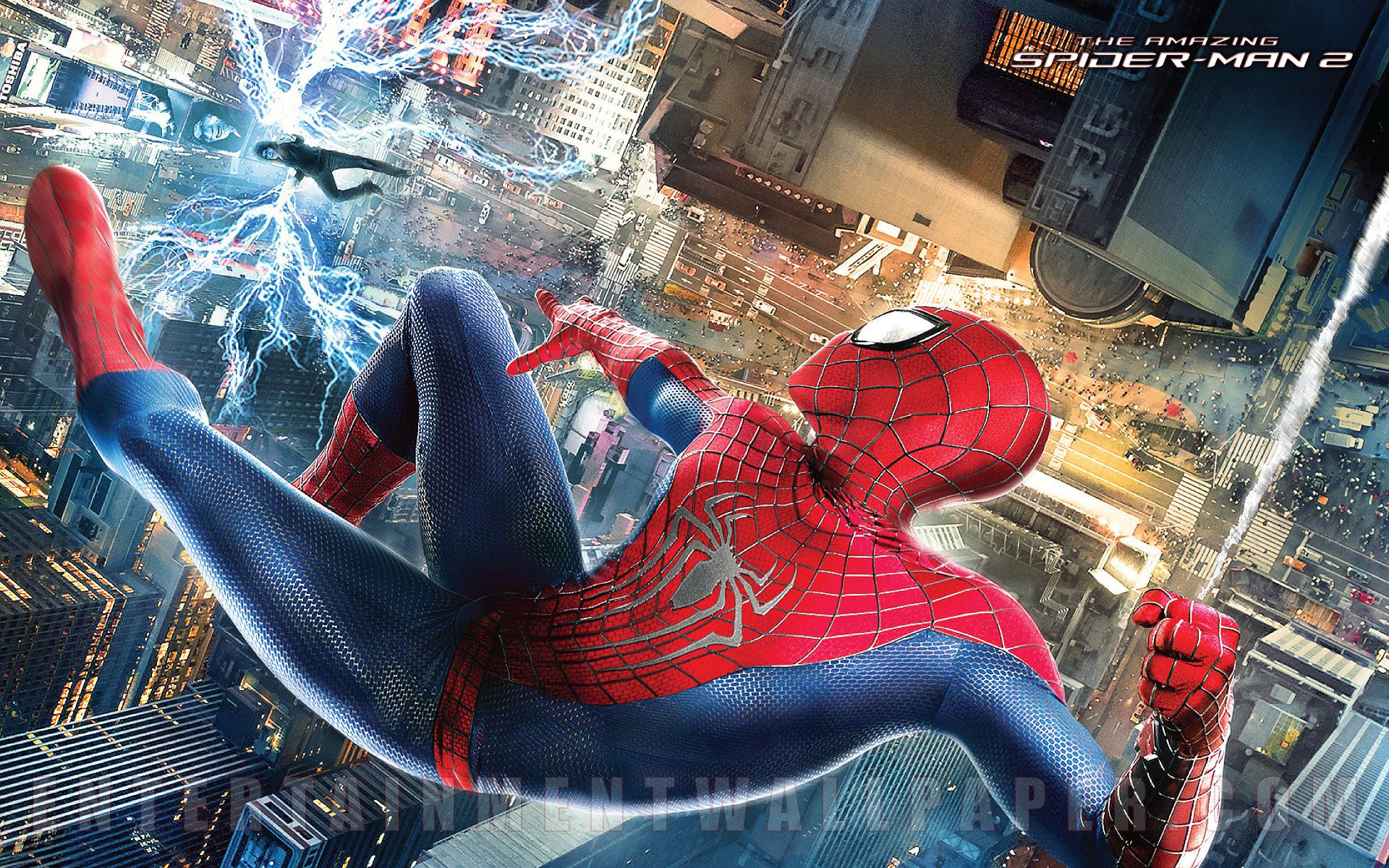 Description: The amazing spider - man 2 poster is shown in this image from the movie.