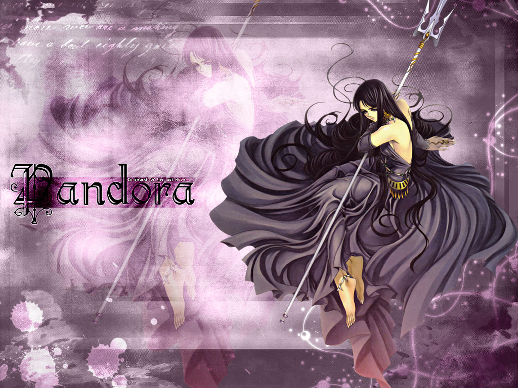 Description: A woman with a sword in her hand and a purple background with a purple swirl around her and the word anadora.