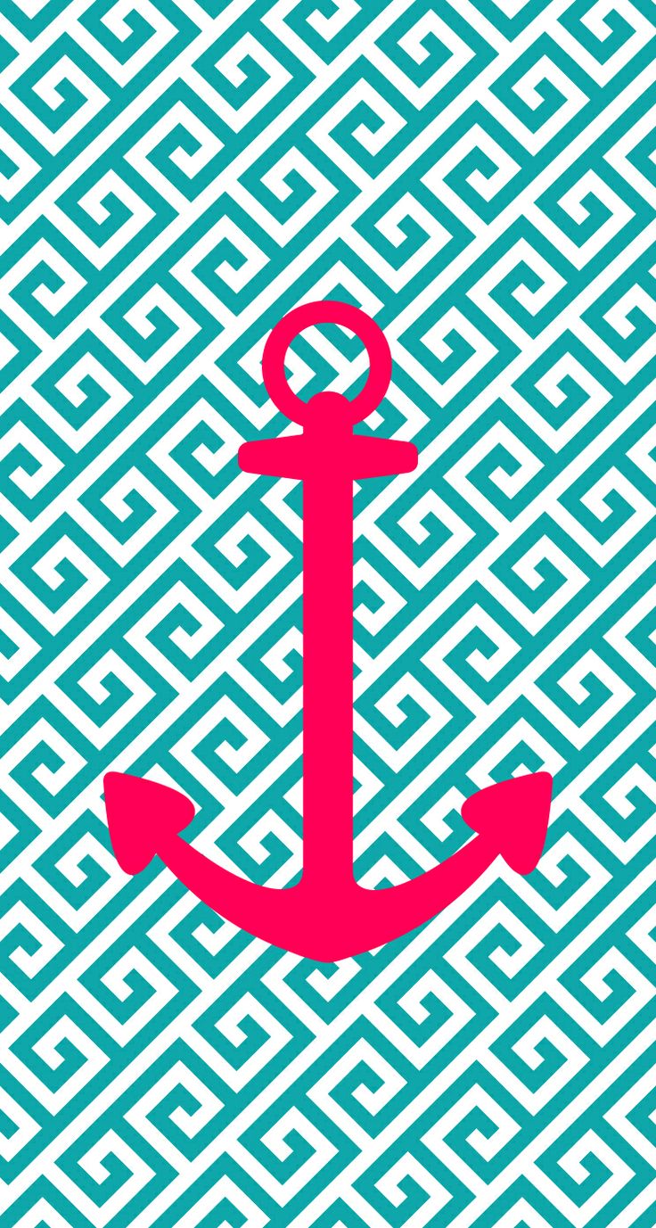 Description: An anchor on a blue and white background with a pattern in the background that looks like a maze or a maze.