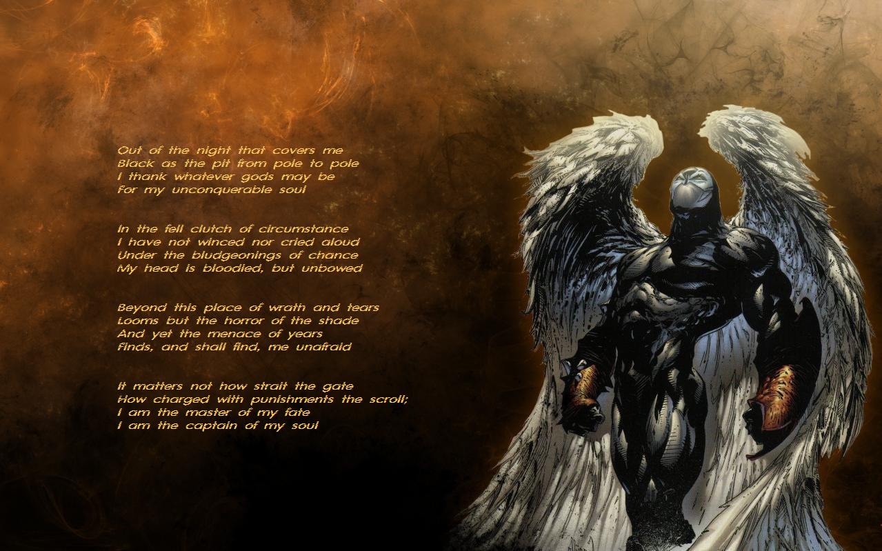 Description: A painting of an angel with a poem written in it's center and a quote in the middle.