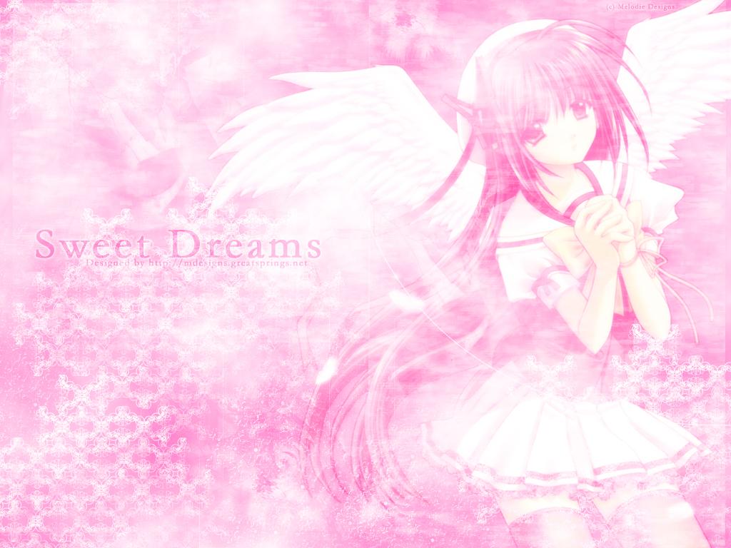 Description: A girl with angel wings and a pink background with stars and snowflakes on it.