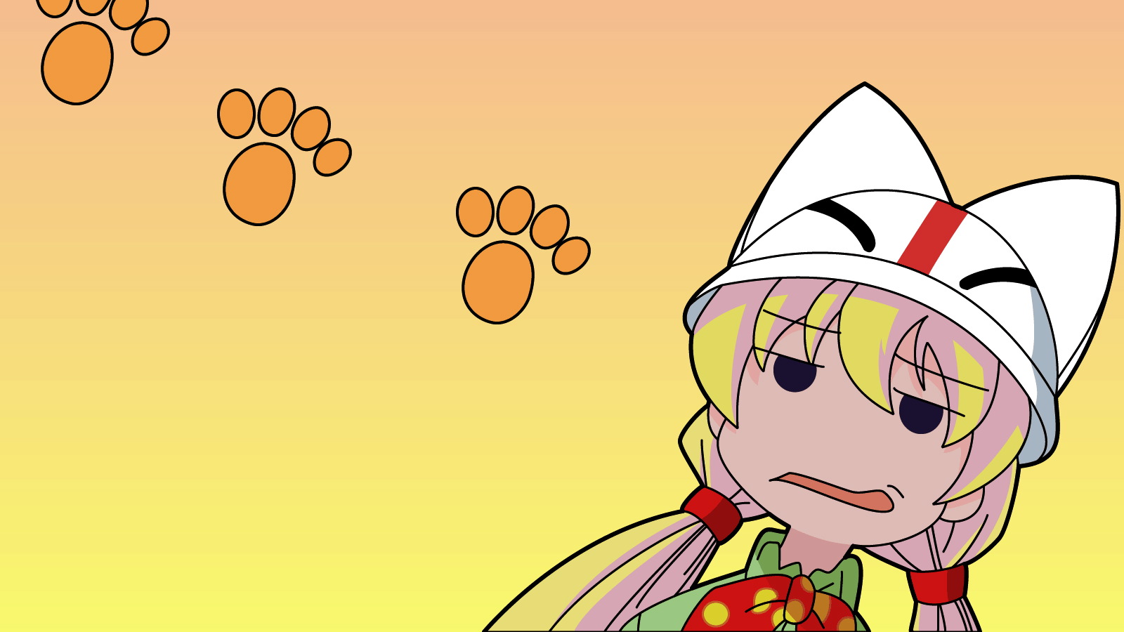 Description: A cartoon character with a cat's paw print on the wall behind her and a dog paw trail in the background.