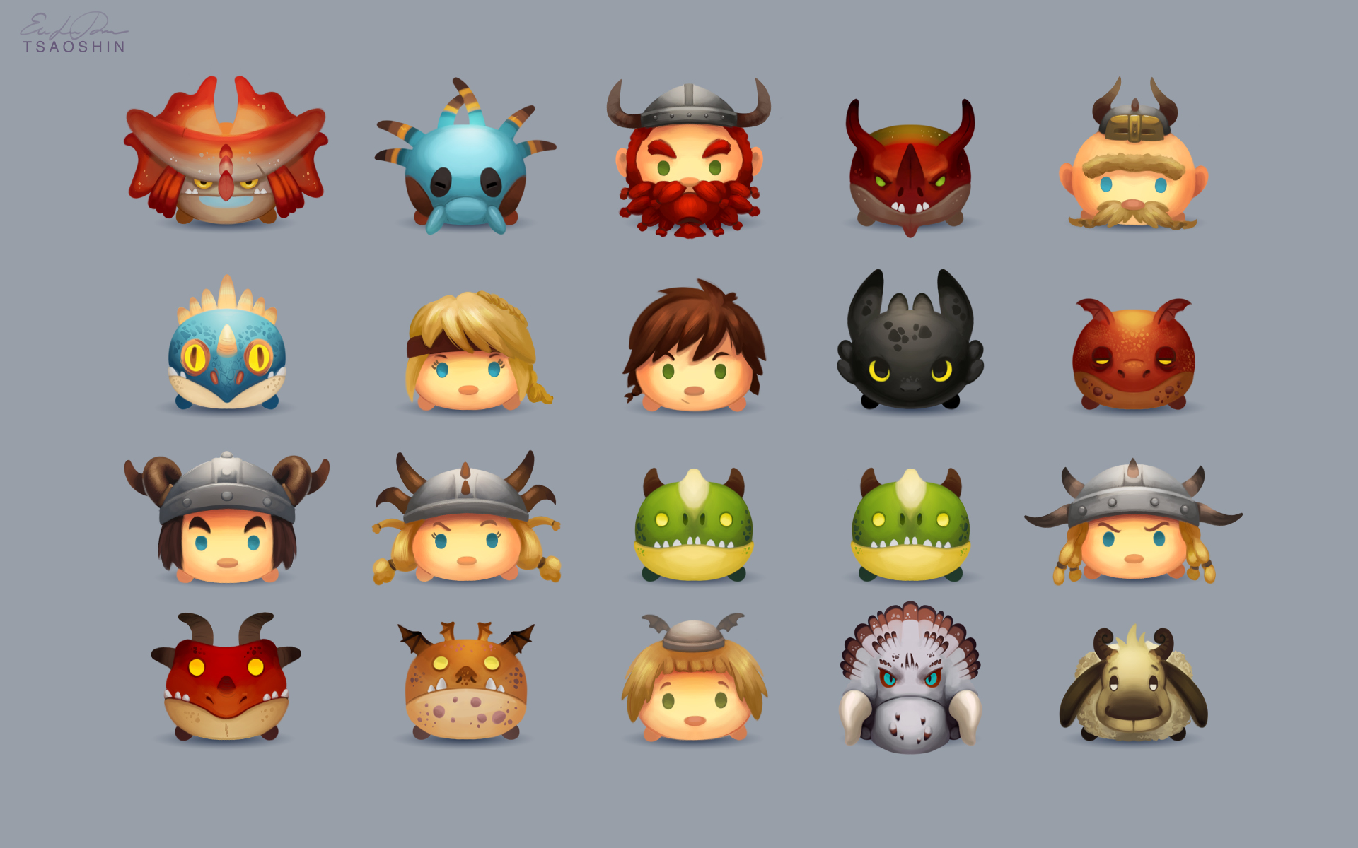 Description: A bunch of different types of animals and people in hats on a gray background with a blue background and a blue background.