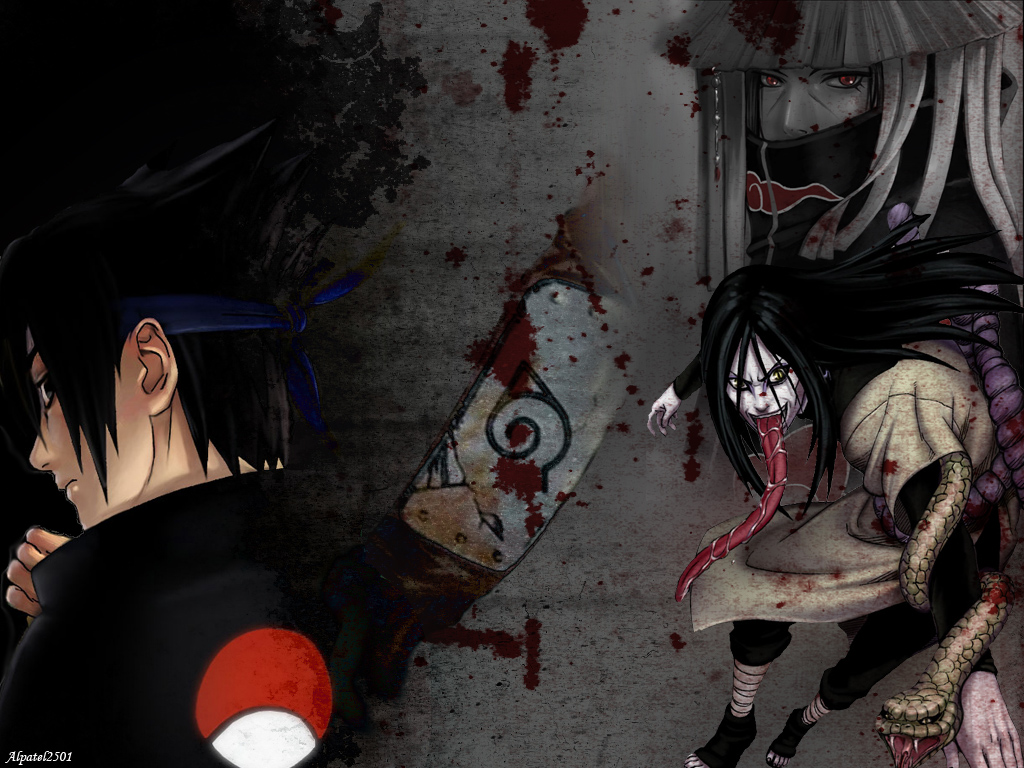 Description: A couple of anime characters standing next to each other in a room with blood on the walls and a bloody wall.
