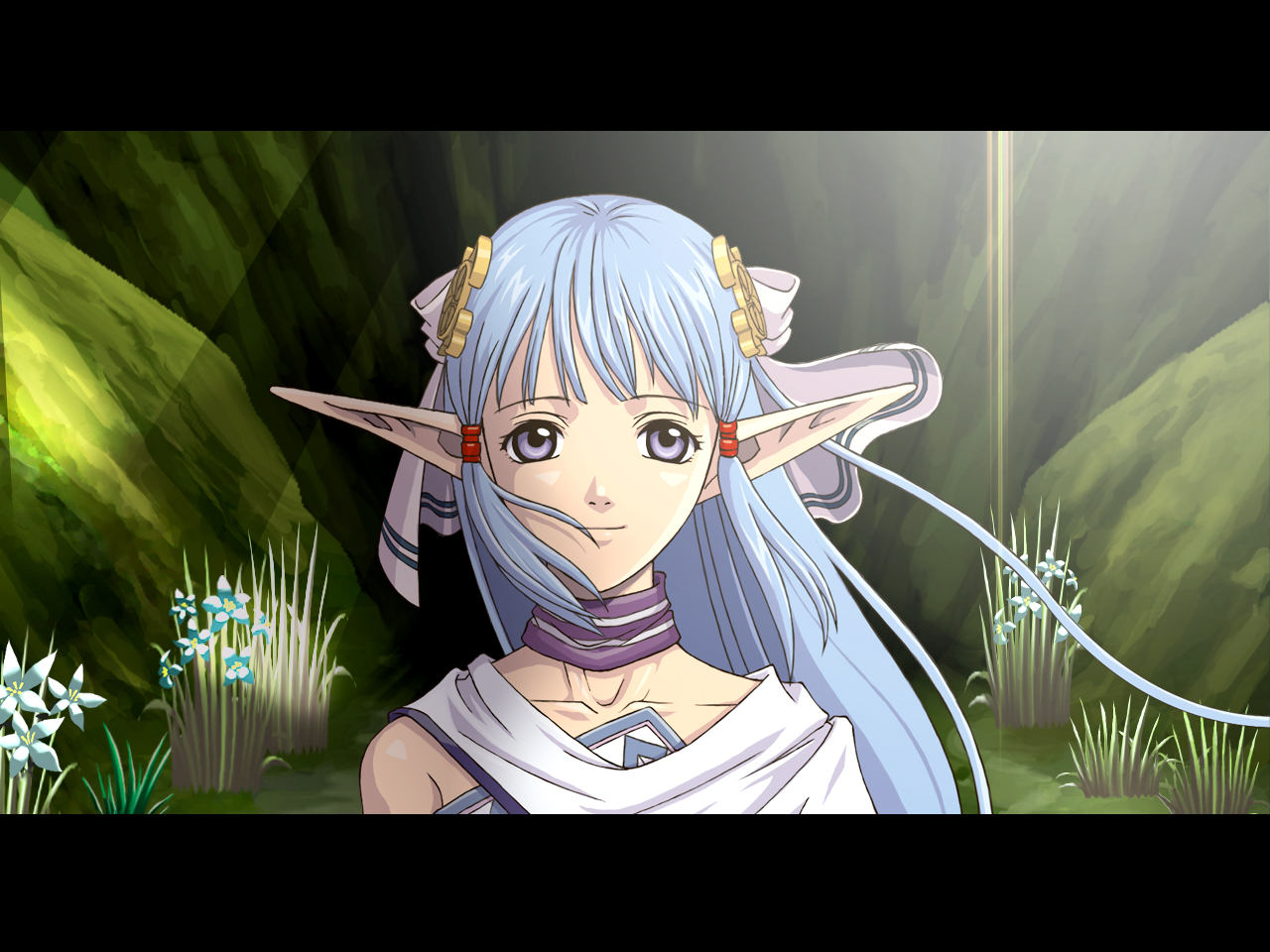 Description: A anime character with blue hair and horns on her head and a blue dress with a white collar and a purple ribbon around her neck.