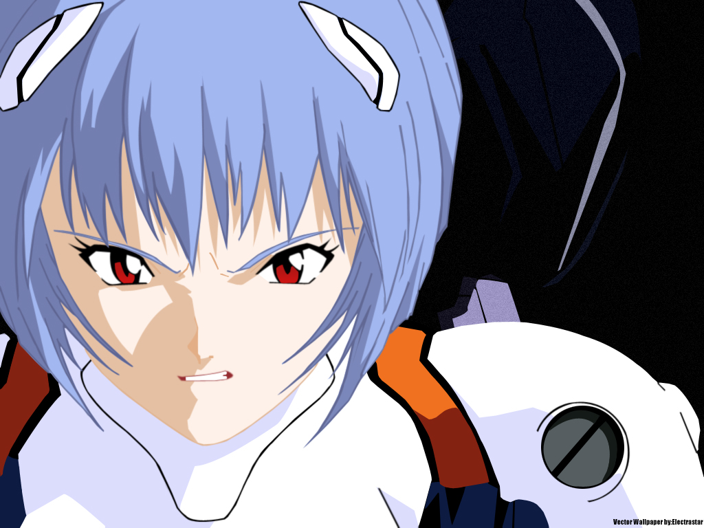 Description: A anime character with blue hair and red eyes looking at the camera with a gun in his hand and a robot behind him.