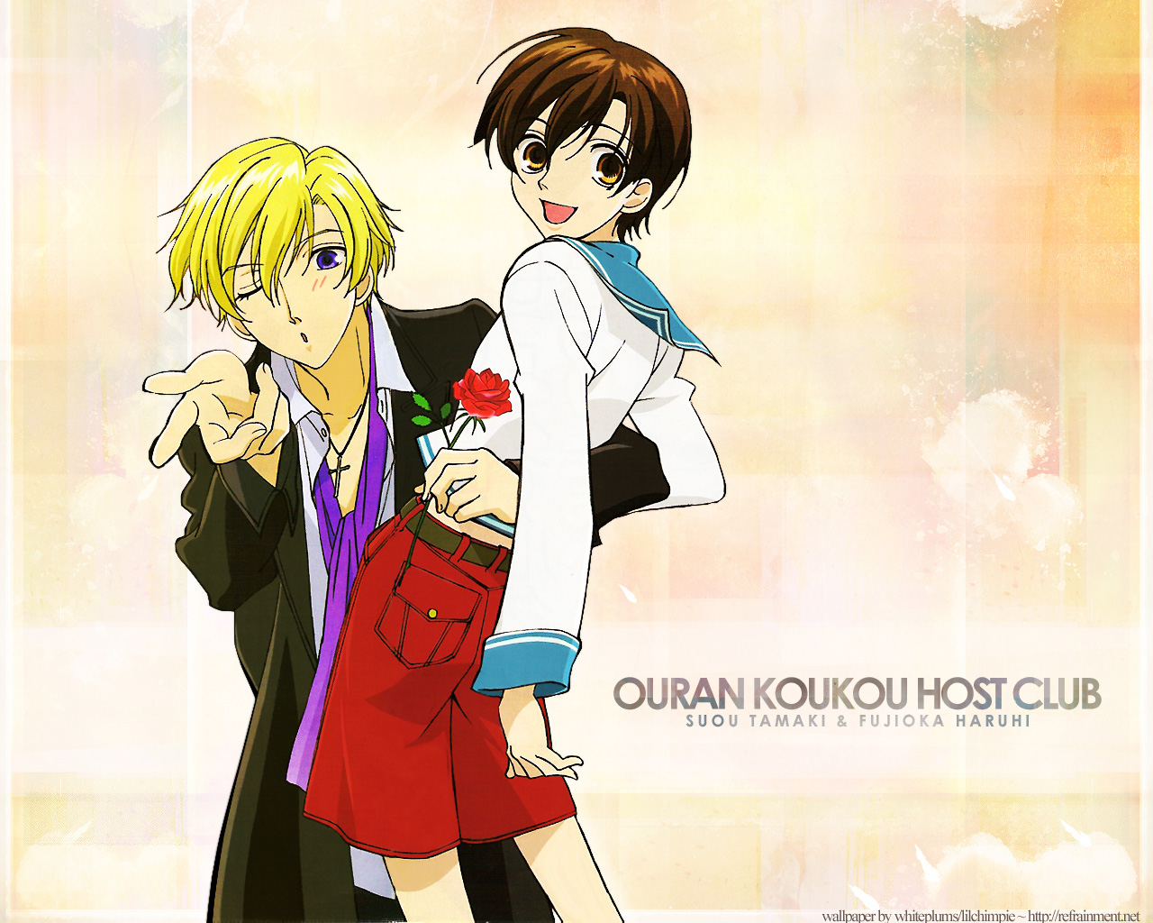 Description: Two anime characters are posing for a picture together.