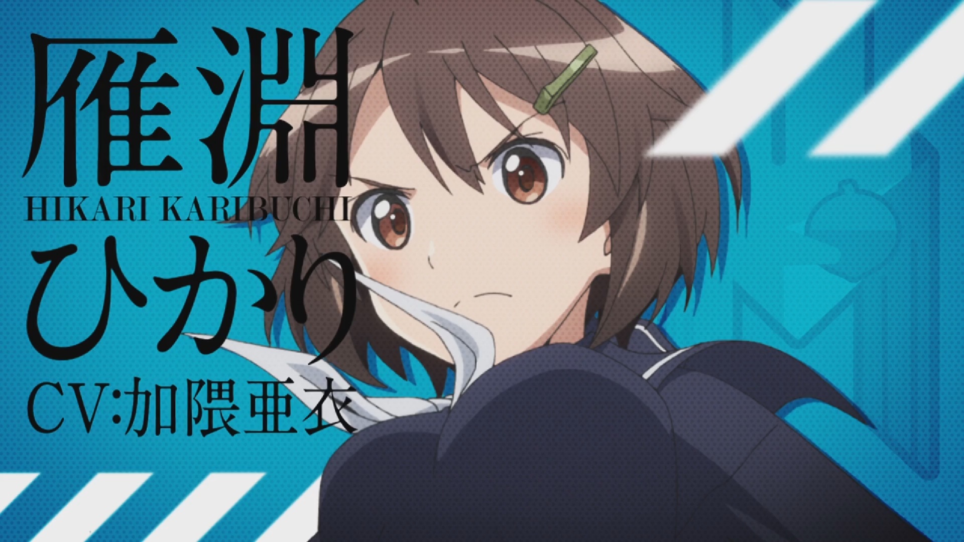 Description: A anime character with a blue background and a white and black background with a blue and white stripe and a black and white stripe.