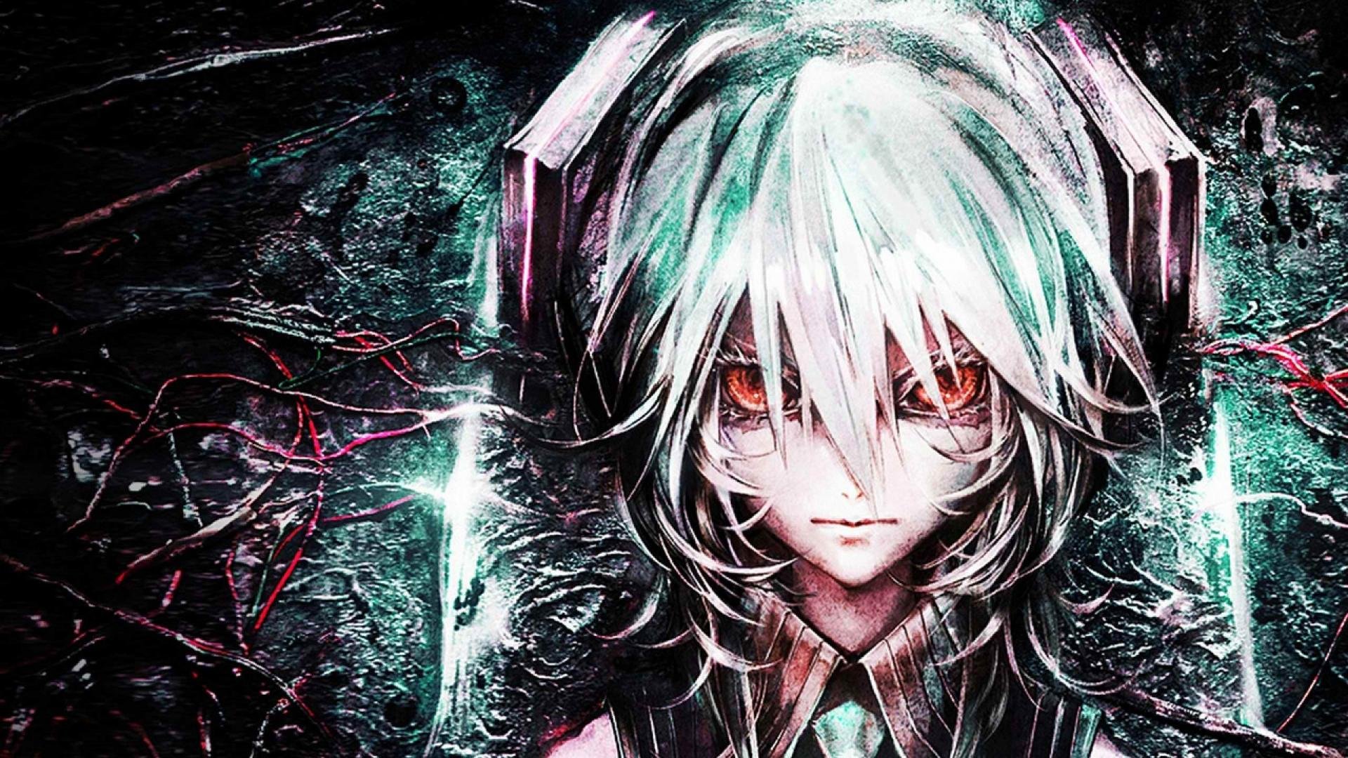 Description: A anime character with long hair and red eyes and a tie on her chest.