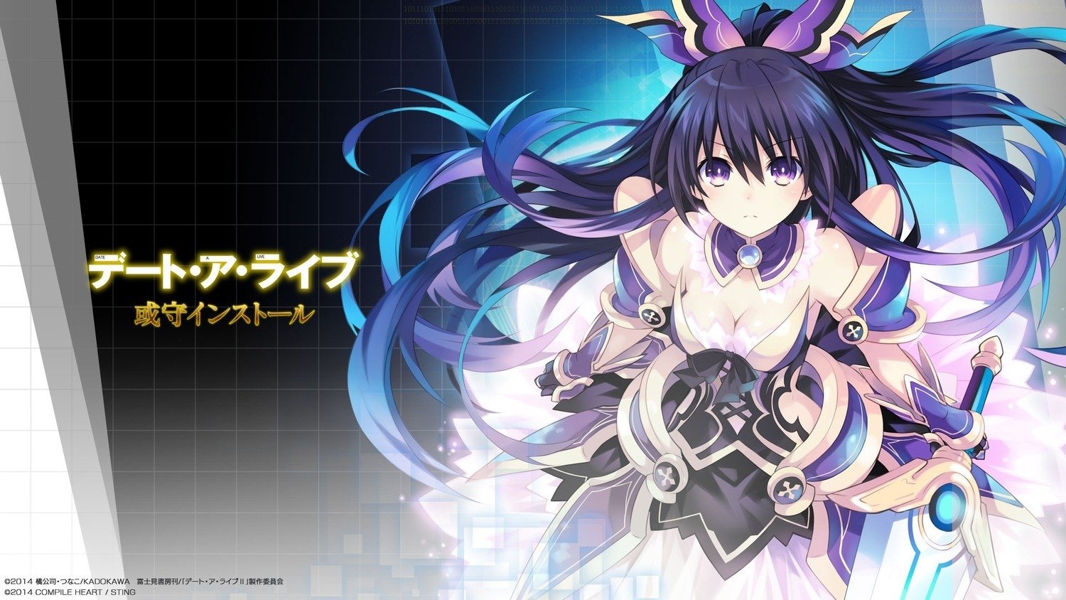 Description: A anime character with long hair and a sword in her hand.