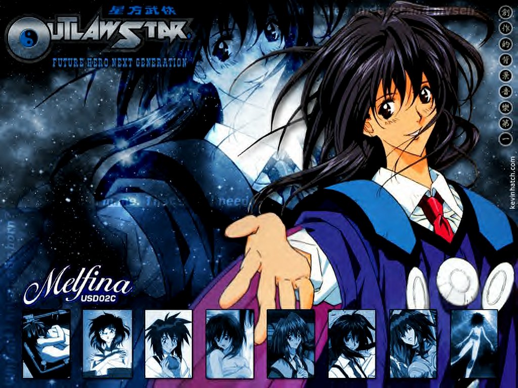 Description: A anime character with long hair and a tie on holding a purple bag with images of him and her.