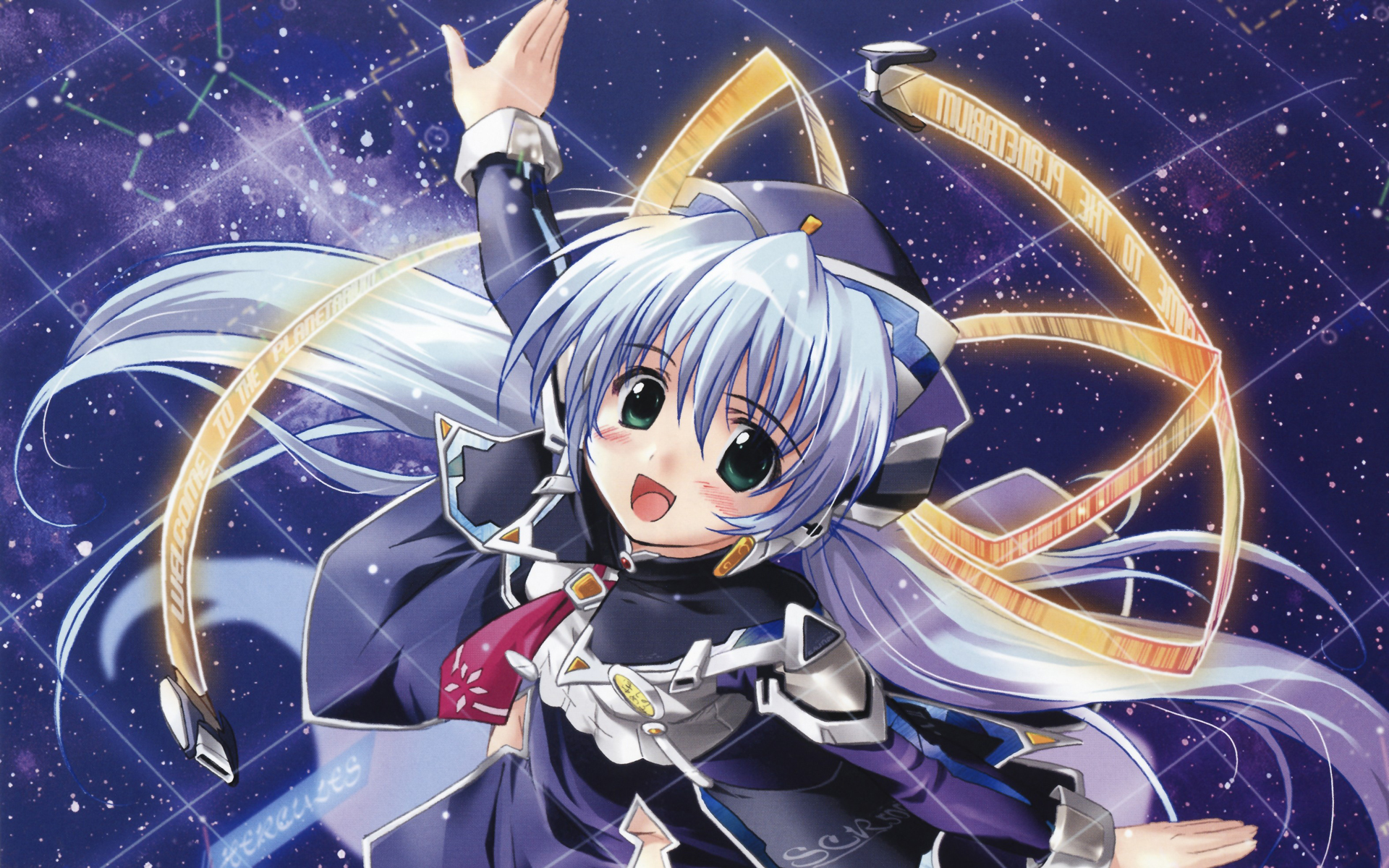 Description: A anime character with long white hair and a blue outfit.