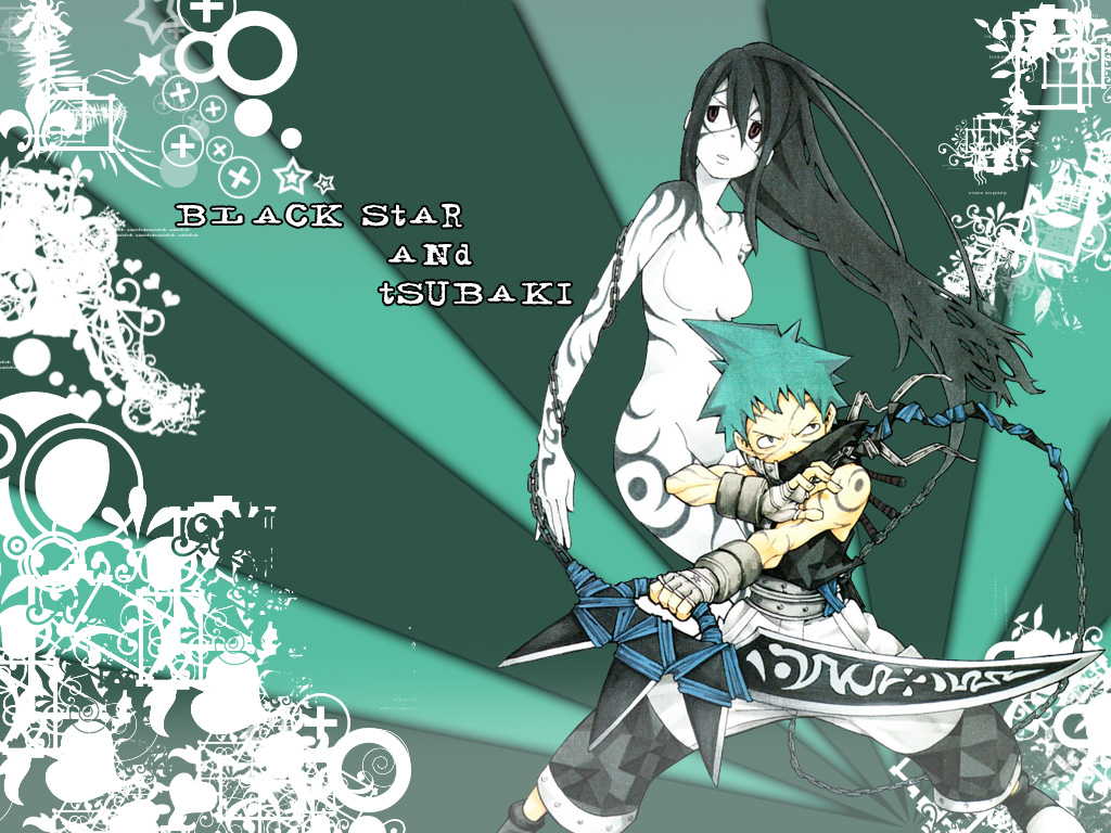 Description: A anime character holding a sword with a background of snowflakes and stars in the background.