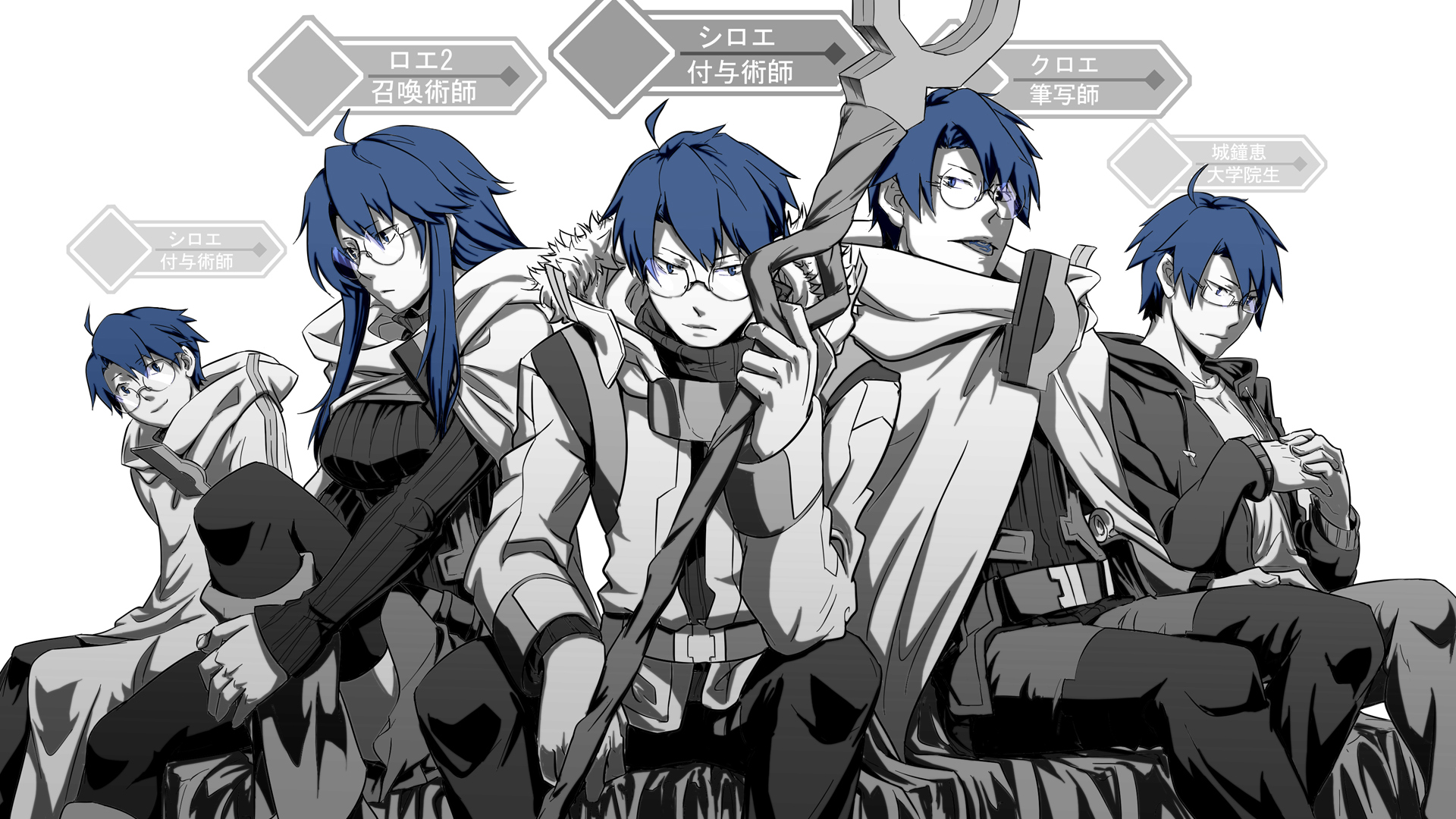 Description: A group of anime characters sitting next to each other on a bench with arrows above them and arrows above them.