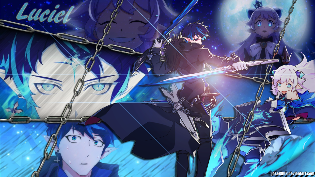 Description: A group of anime characters standing in front of a chain fence with a moon in the background and a full moon in the background.