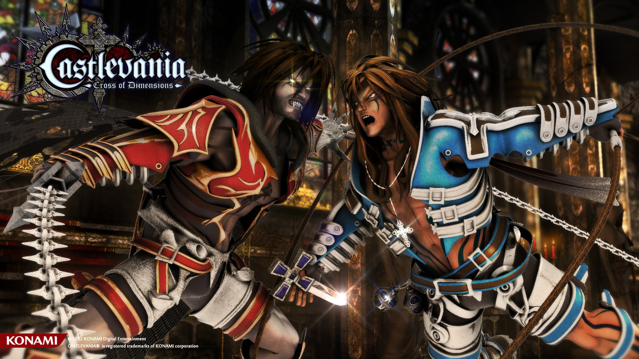 Description: A couple of anime characters fighting each other in a game screen shot with a sword in hand and a demon in the background.