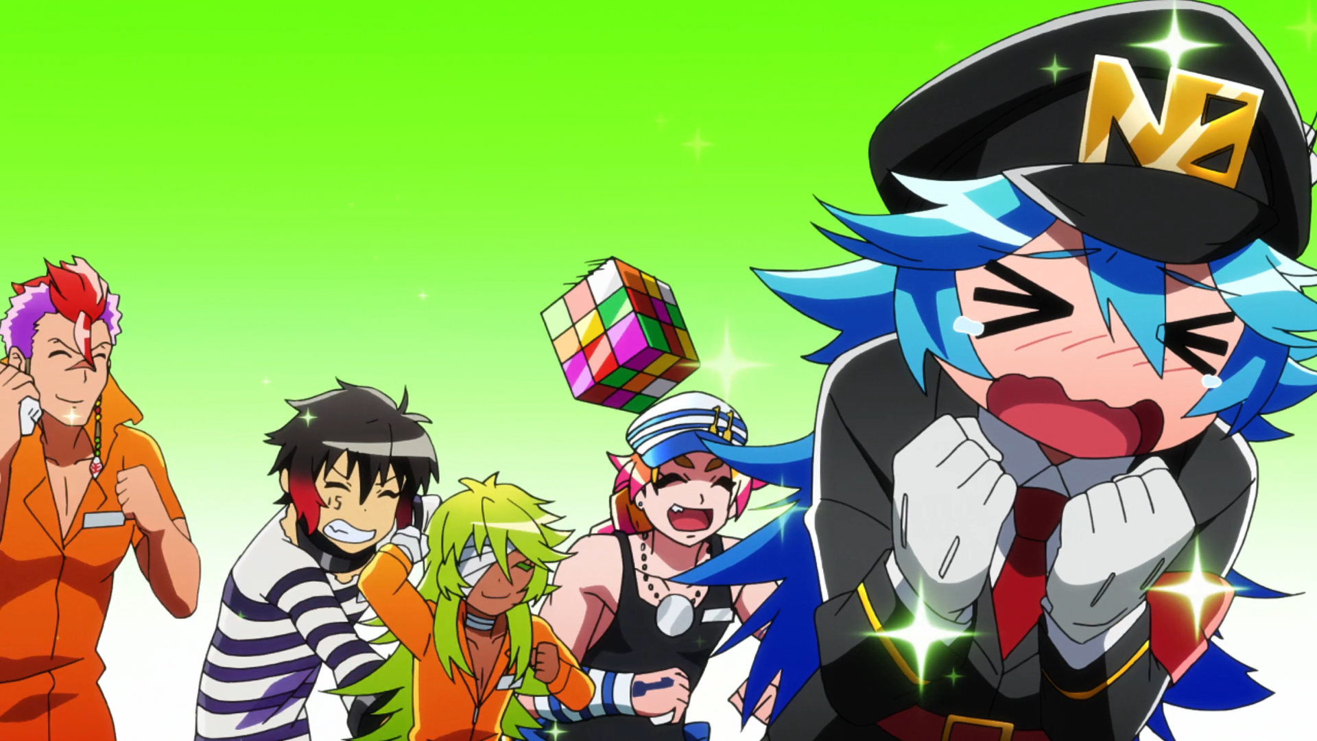 Description: A group of anime characters with a green background and a green background with a white background and a green background with a green background and white background with a.
