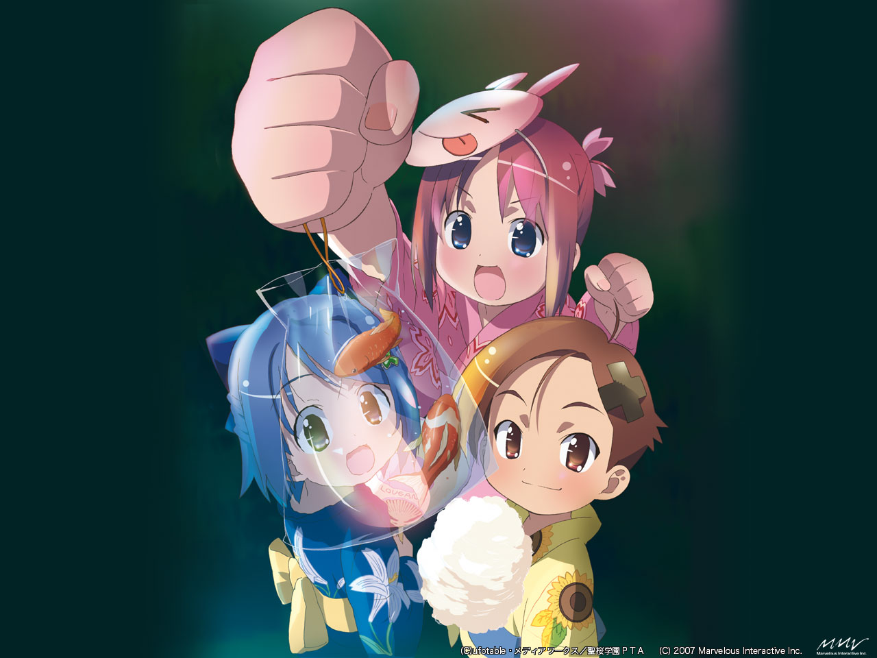 Description: A group of anime characters standing next to each other on a dark background with a green light behind them.