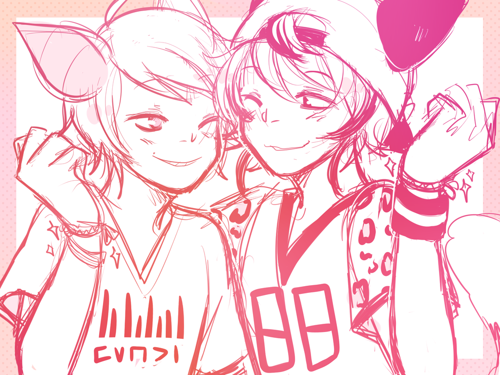 Description: Two anime characters are hugging each other with a balloon in the background of the picture.