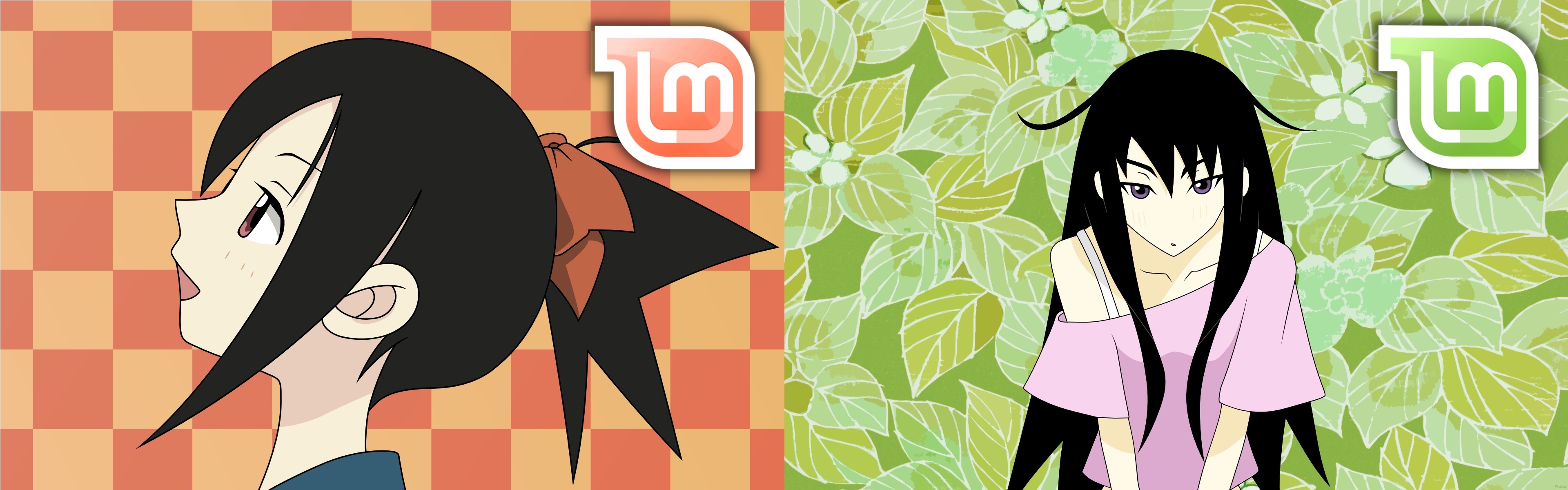 Description: Two anime characters with long hair and one with a ponytail and one with a ponytail and one with a ponytail.