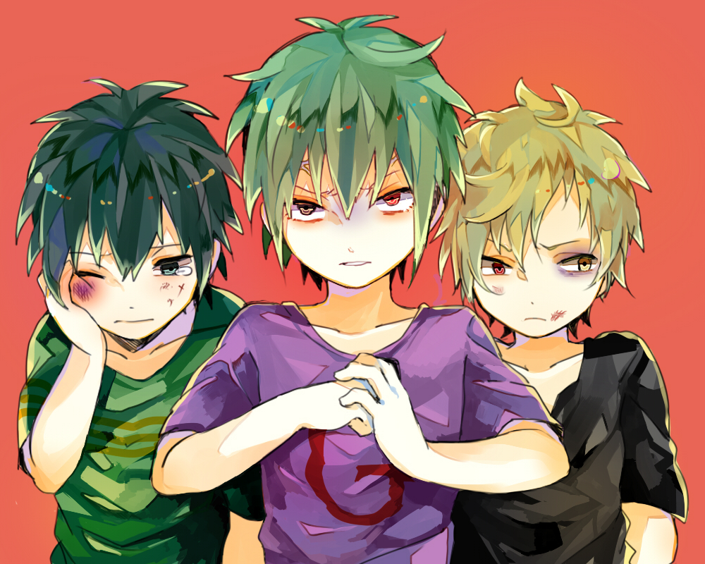 Description: Three anime characters are posing for a picture together.