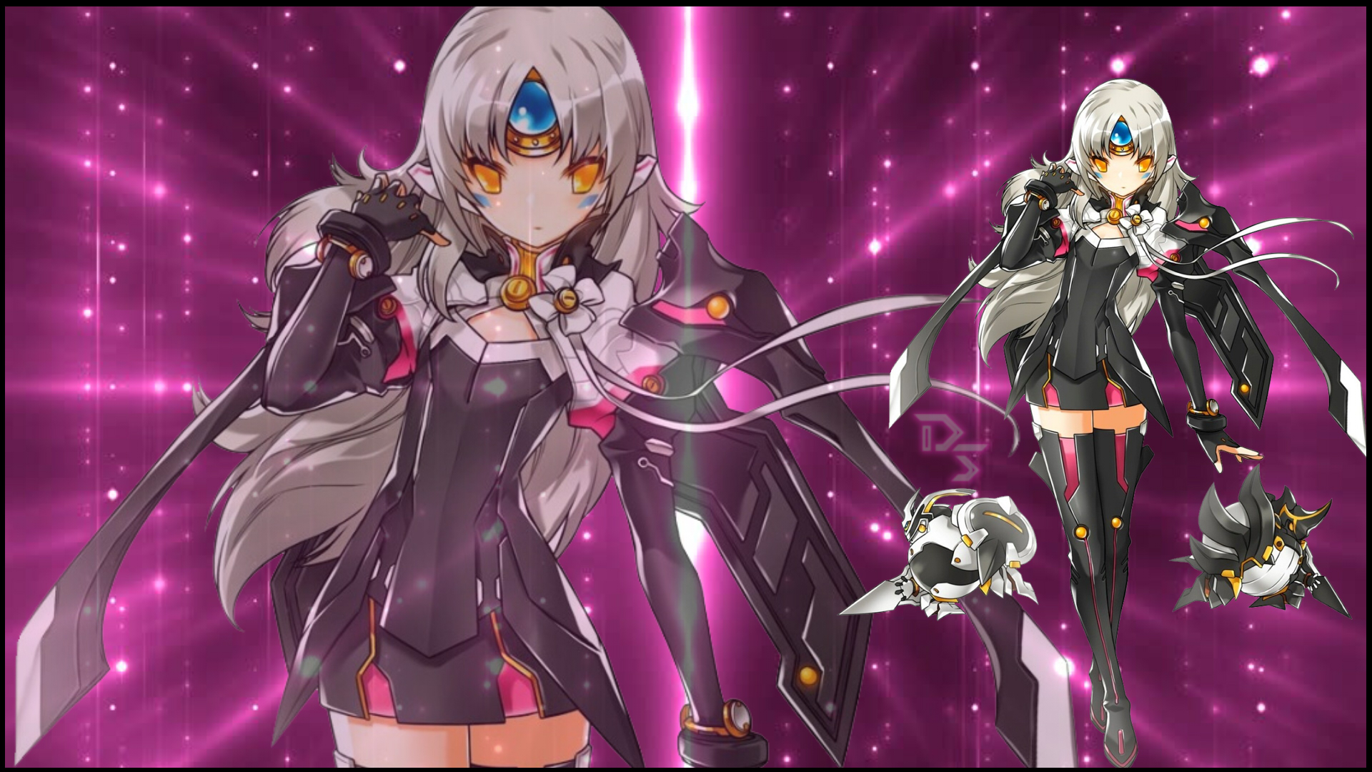 Description: Two anime characters standing next to each other in front of a purple background with stars and a lightening effect.