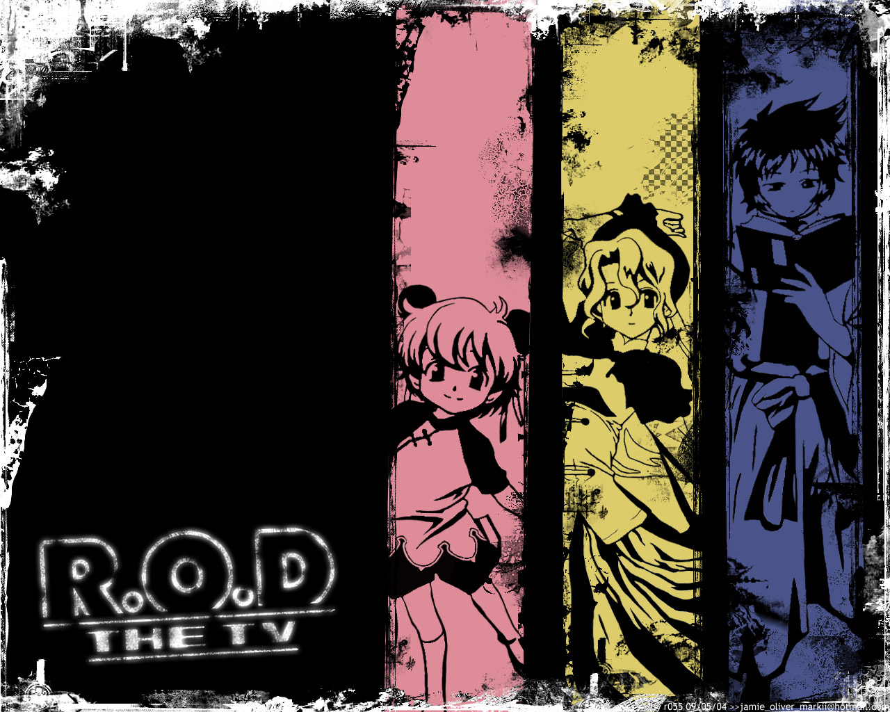 Description: A group of anime characters standing next to each other in front of a black background with the word rood the tv.