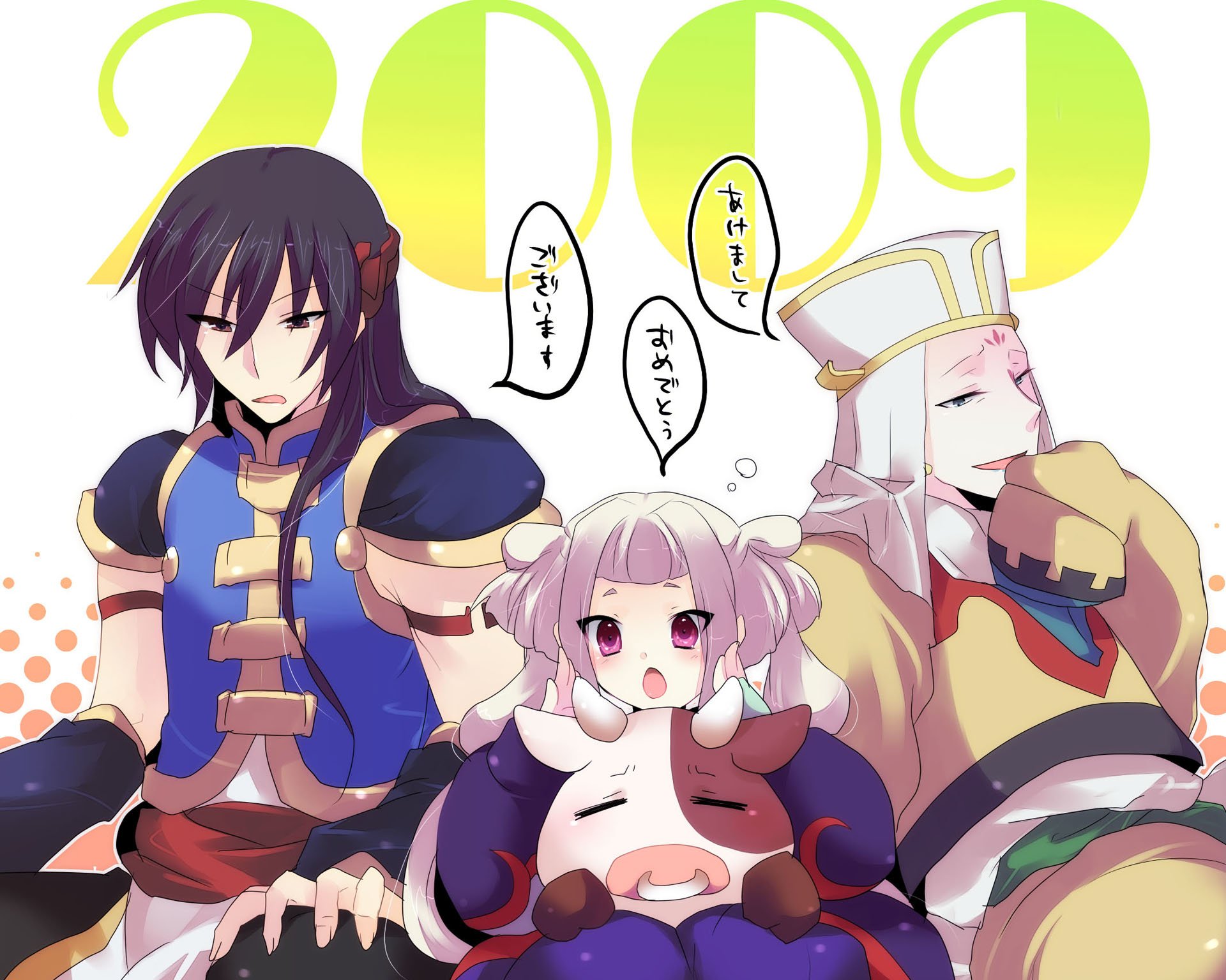 Description: A group of anime characters sitting next to each other with speech bubbles above them that say popo.