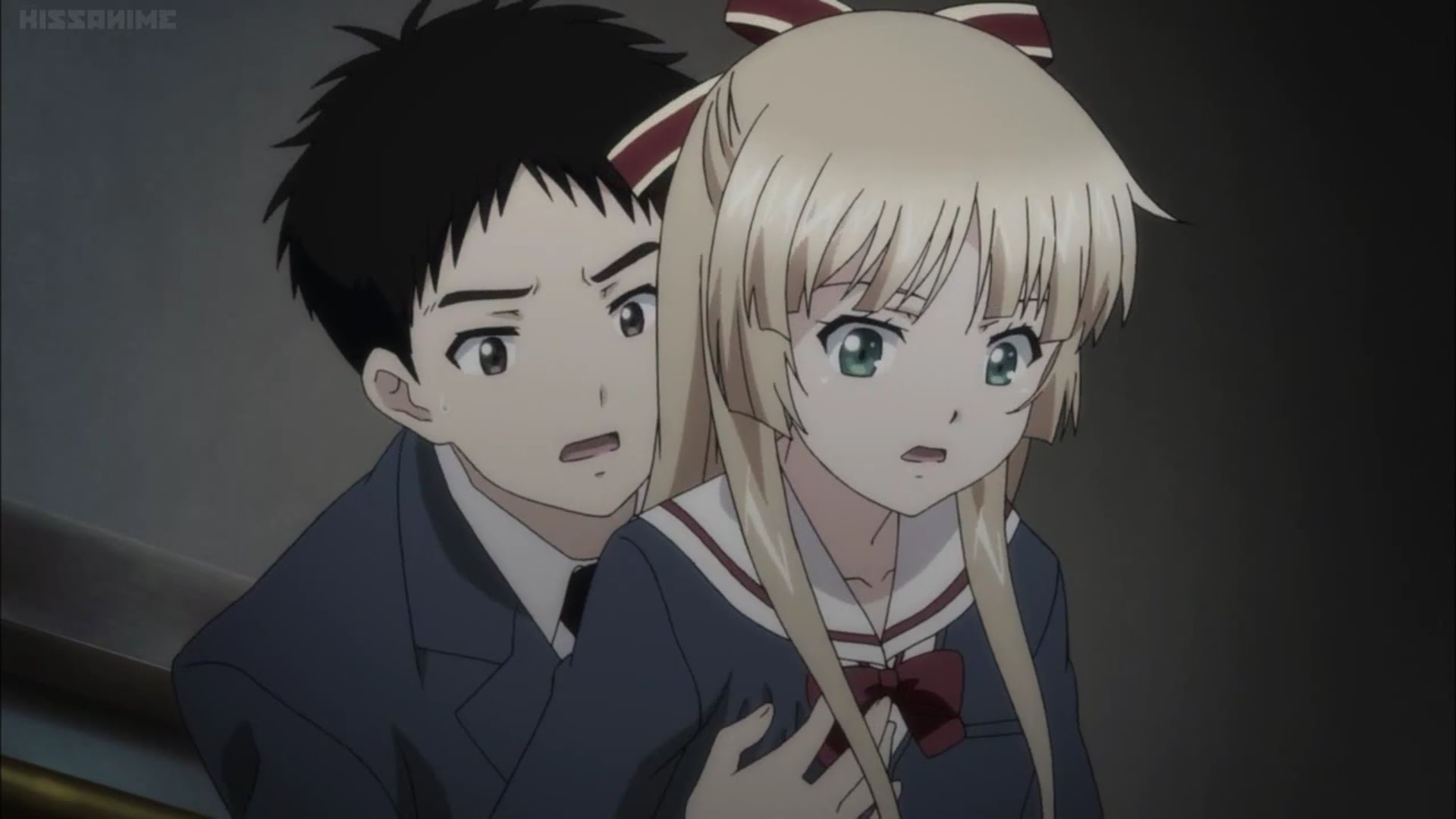 Description: Two anime characters are staring at something in the distance.
