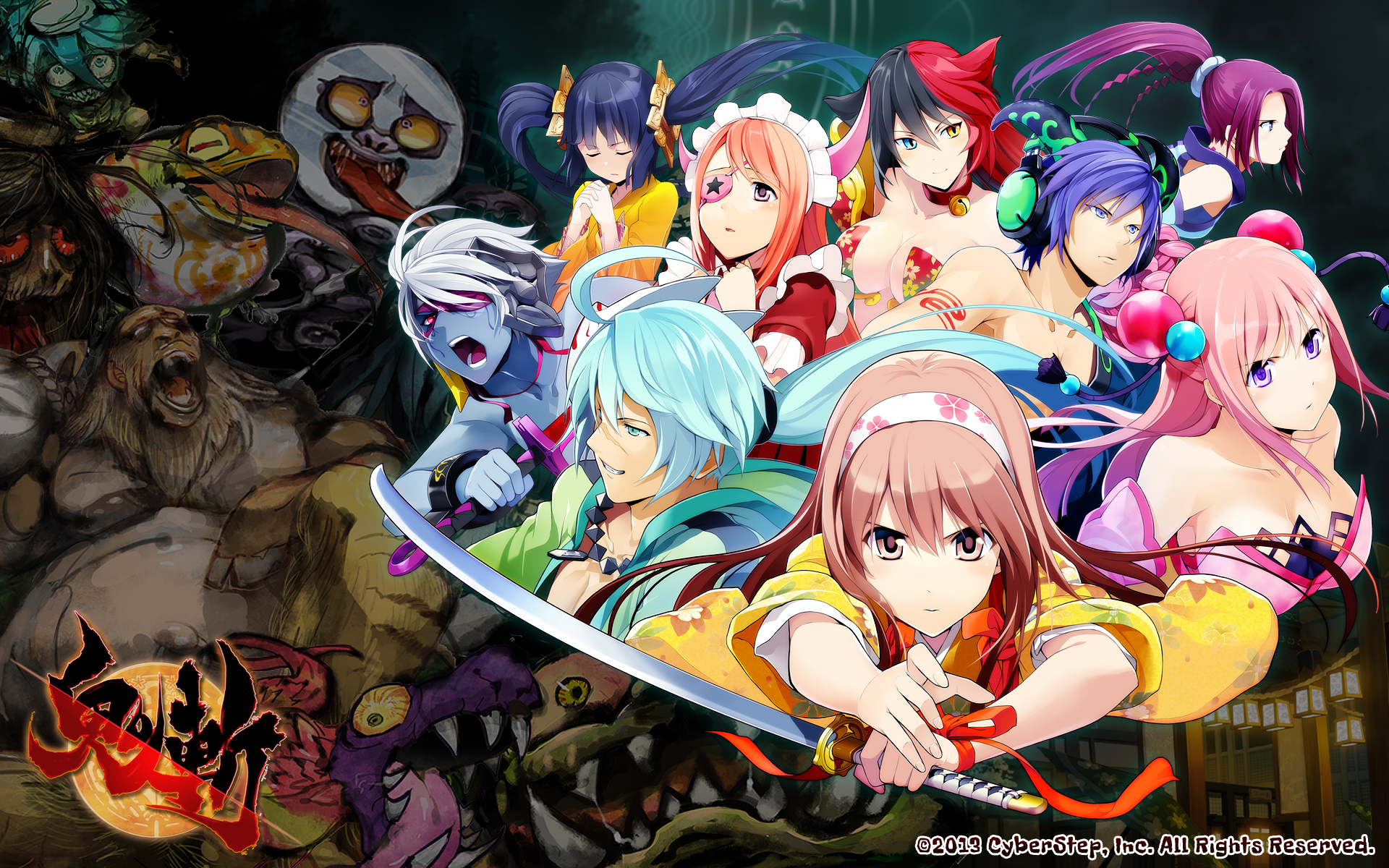 Description: A group of anime characters with swords and armors in front of a dark background with a demon and demon.