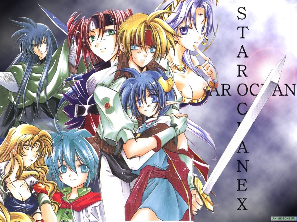 Description: A group of anime characters with swords in their hands and the words star arc arcant c and d.
