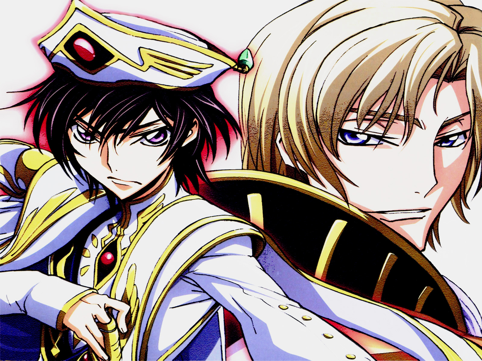 Description: Two anime characters one is wearing a uniform and the other is a sailor and a sailor girl with a sword.