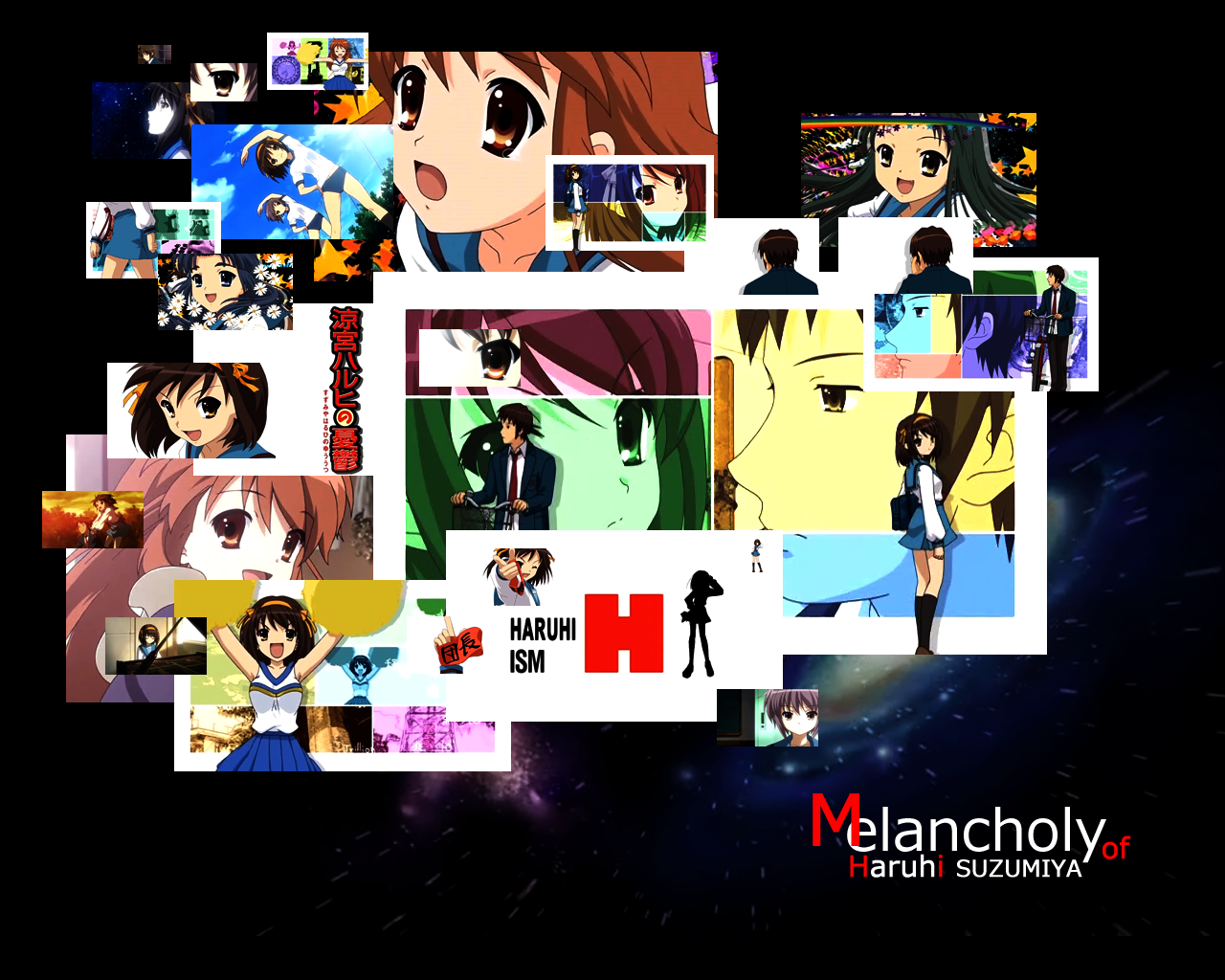 Description: A collage of anime characters with a black background and a red and white background with a black background.