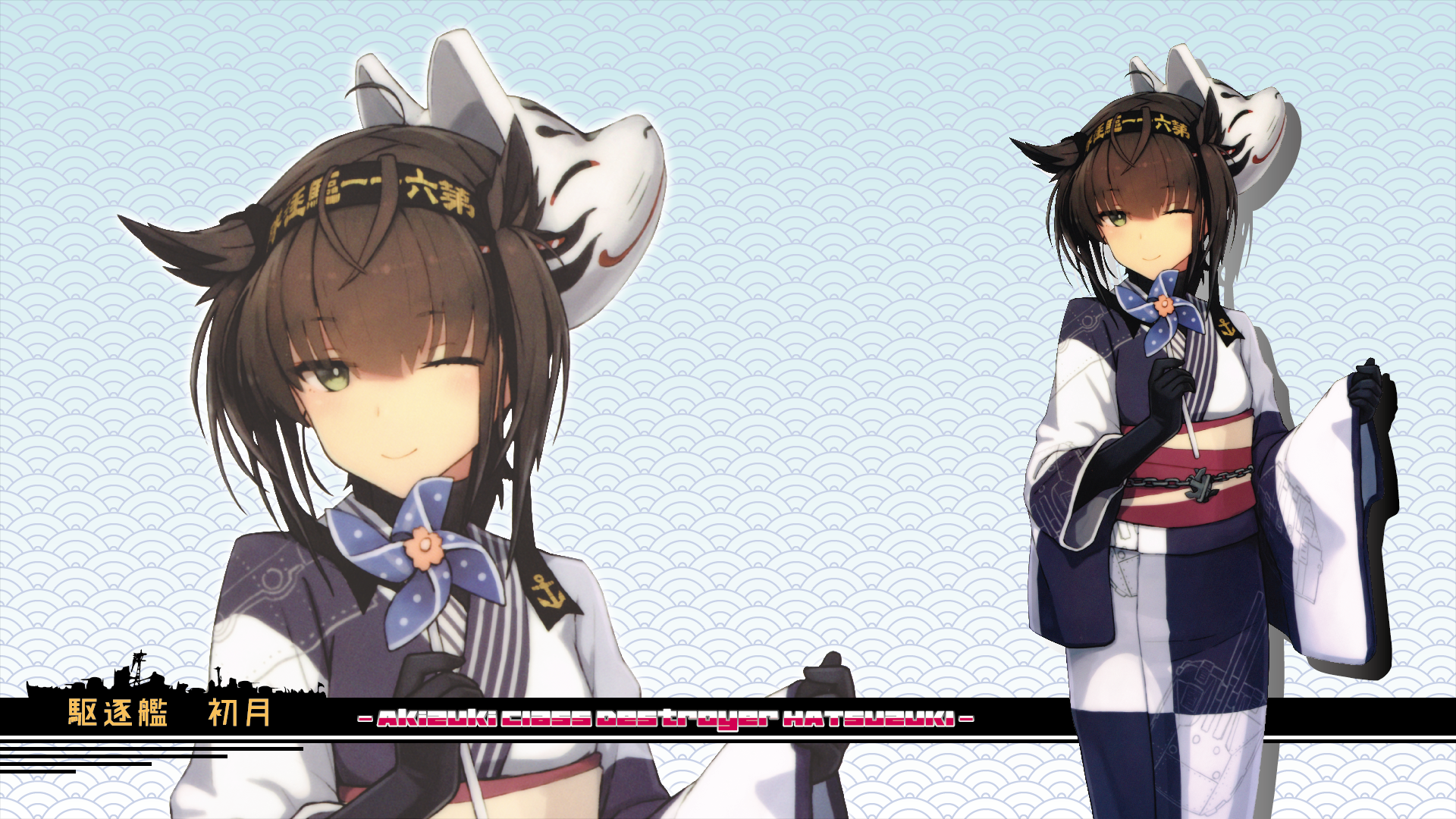 Description: A couple of anime characters standing next to each other in front of a blue background with white and black letters.