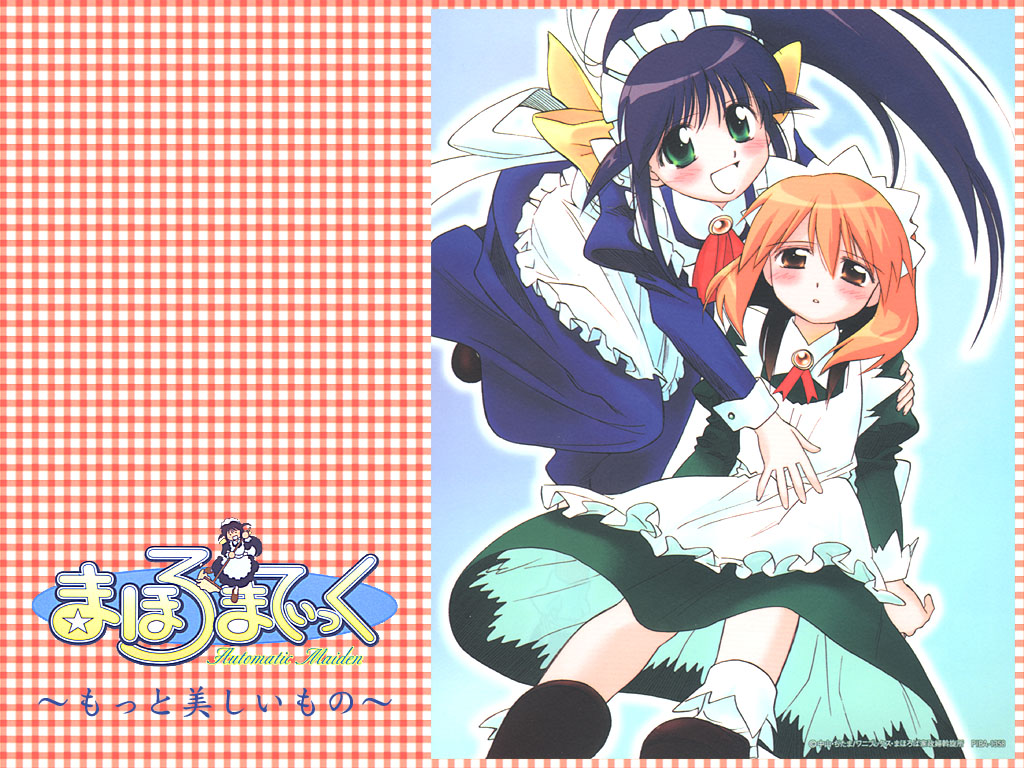 Description: A couple of anime characters are posing for a picture together in front of a checkered background with a checkered background.