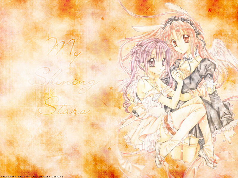 Description: A couple of anime characters hugging each other on a wallpaper background with a message written in the middle.