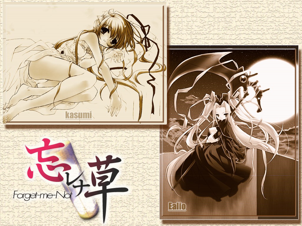 Description: A couple of anime characters are in a picture together with a pen and paper clippings on the wall.