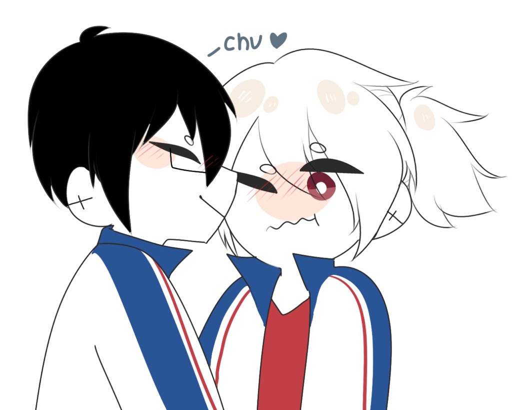 Description: A couple of anime characters with a white background and a blue and red background with the words chu on it.