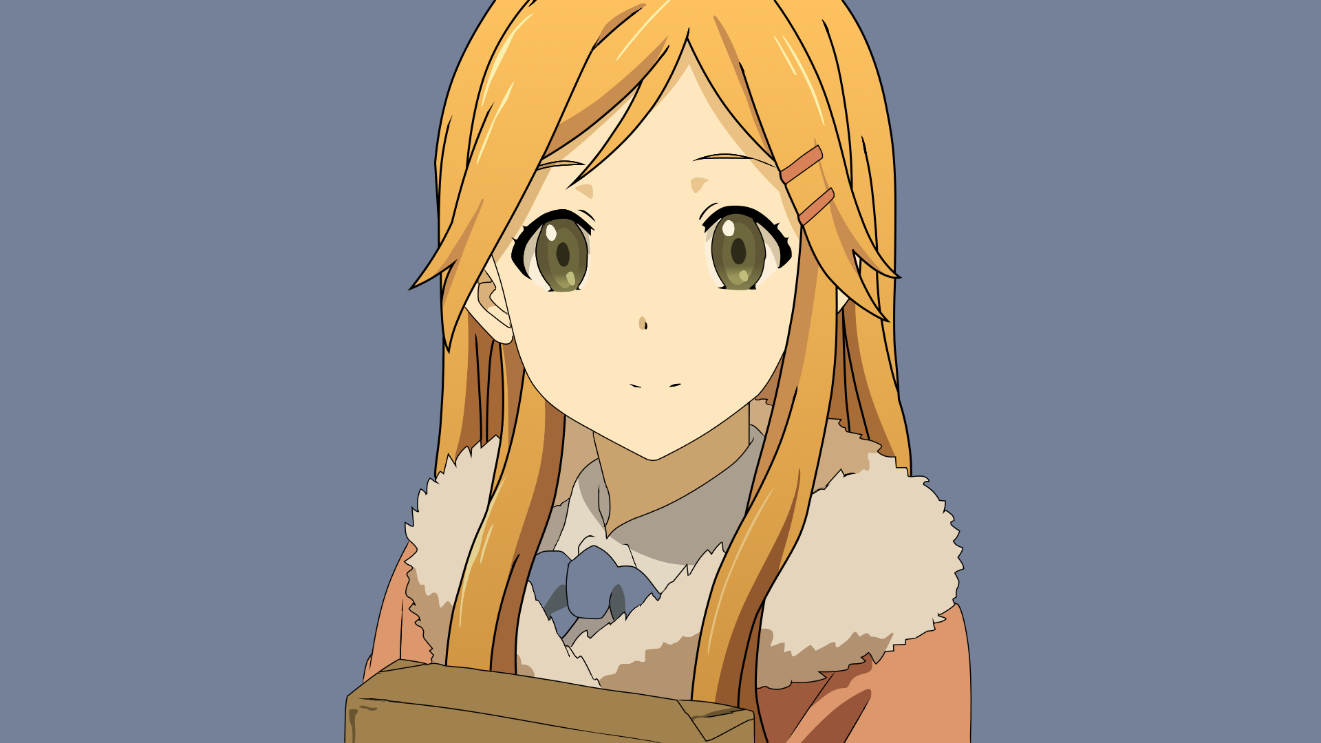 Description: A anime girl with long blonde hair and a box in her hands.